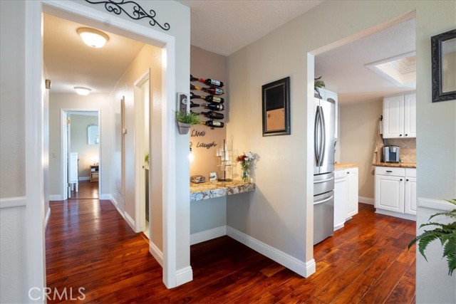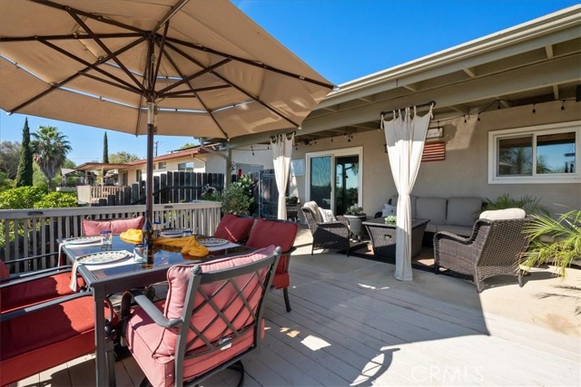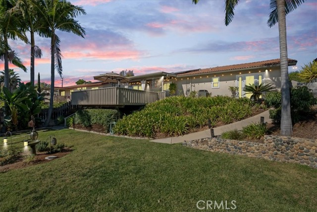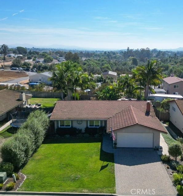 Ideally situated on a cul-de-sac in the heart of Fallbrook, this beautifully maintained home offers comfort, style, and convenience just minutes from schools and shopping. A paver walkway and driveway lead to the inviting front entrance. Inside, you’ll find stunning wood floors, a cozy fireplace, and a bright kitchen featuring elegant granite countertops, stainless steel appliances, and recessed lighting. Both bathrooms have been tastefully remodeled, and the spacious primary suite offers an ensuite bath and French doors that open to the backyard. Enjoy outdoor living in your private retreat, complete with a covered patio, expansive deck, and lush tropical landscaping. The covered BBQ station and charming pergola create the perfect setting for entertaining or relaxing. Additional features include an automatic irrigation system, energy-efficient dual-pane windows, and a cost-saving solar system. Make this special home yours today.