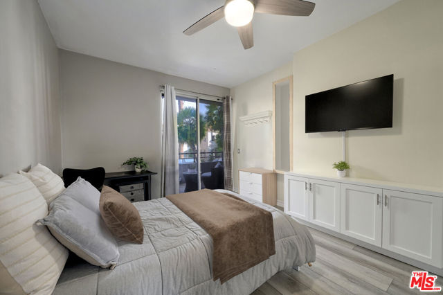 Experience luxury living on iconic Palm Drive, one of Beverly Hills' most picturesque palm tree-lined streets. This beautifully remodeled 4-bedroom, 3.5-bathroom front-facing corner condo offers over 2,100 square feet of bright, sophisticated space. The open-concept layout includes a spacious living room, formal dining area, and eat-in kitchen nook, all seamlessly flowing to a generous private deck ideal for entertaining or relaxing outdoors. The gourmet kitchen features top-of-the-line stainless steel appliances, custom cabinetry, stone countertops, and designer finishes. The primary suite includes a large walk-in closet and a spa-inspired ensuite bath. Two additional bedrooms have their own ensuite bathrooms, and a fourth bedroom, perfect as a home office or guest suite, offers direct access to the deck. The unit also includes a laundry room with added storage, custom built-ins, plantation shutters, and premium new flooring. Building amenities include a rooftop deck, secure entry with surveillance, gym, yoga/meditation room, beautiful residents' entertainment space with loft, and two parking spaces. Located in the coveted Beverly Hills school district, just blocks from Beverly Vista Elementary, and moments from world-class shopping and dining, this turnkey residence offers the ultimate in upscale Beverly Hills living.