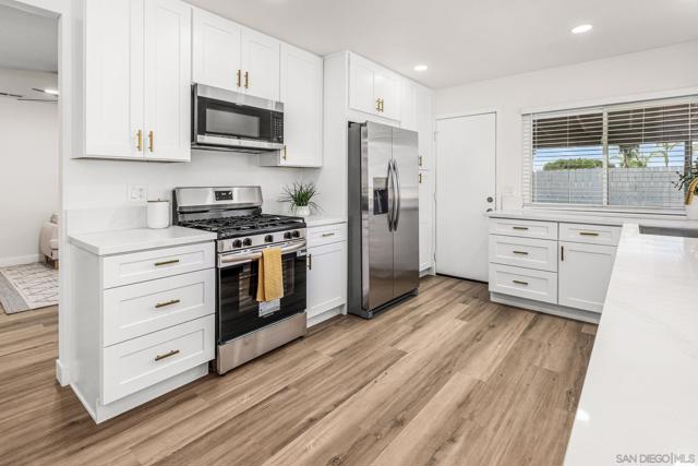 This fully remodeled, move-in ready home, located in the desirable neighborhood of Tri City, Oceanside offers an ideal combination of luxury, comfort and convenience. This one story residence features 4 bedrooms and 2 bathrooms with a large primary suite and en suite bathroom. This home offers new appliances, a brand new roof, new flooring throughout, new interior and exterior paint, new closet doors, new countertops, new kitchen and new kitchen cabinets, new fans, and new bathrooms. Each bathroom has new toilets, new vanities, new showers, new lighting, new tile, as well as new fixtures. Gorgeous kitchen features a gas range and ample countertop space which is perfect for those who enjoy cooking and entertaining. There is new lighting throughout, new front door gates and new interior doors, all with new hardware. Brand new air-conditioning is installed. The driveway has an entry to the side patio which offers ample storage for an RV, boat or any other toys. Turnkey home with new front yard landscaping, new front side fencing gates, new exterior lighting and drip system installed. The two car attached garage can be converted into additional living space if desired. This home's open floor plan allows for an abundance of natural light, creating a bright and welcoming atmosphere throughout. The backyard is an open canvas for anything you can dream of. Enjoy the peaceful surroundings of this safe and quiet neighborhood, where friendly neighbors and nearby parks, grocery stores and restaurants create an ideal setting for everyday life.