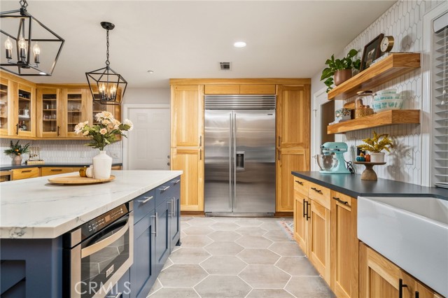 Experience luxury, space, and breathtaking views in this custom-built 4-bedroom, 2.5-bath Cape Cod-style home with 2,572 sq. ft. of living space plus a 520 sq. ft. finished attic, nestled in the prestigious Poppy Hill community of Riverside. Built on an engineered hillside foundation, this home showcases spectacular sunsets, sparkling city lights, and snow-capped mountain views from nearly every room and the wraparound porch. Recently painted inside and out and featuring new flooring throughout, this home has been beautifully refreshed while maintaining its custom charm. The spacious family room features a wood-burning stove, perfect for cozy evenings, and the large dining area opens seamlessly to the gourmet-style kitchen. Designed for entertaining and culinary creativity, the kitchen includes: high-end stainless steel appliances, a Sub-Zero refrigerator, drawer microwave, wine refrigerator, and custom cabinetry. The farmhouse sink, modern tile flooring, and kitchen island with breakfast bar make this space both functional and stunning. The primary suite is a true retreat, offering a private balcony to enjoy sweeping valley views, a walk-in closet with custom-made shelves, and a spa-inspired bathroom with dual sinks, a deep soaking tub, and a separate shower. Upstairs, the 520-square-foot finished attic adds incredible versatility, featuring built-in cabinets, a desk, and shelving. This space can easily transform into a home theater, office, gym, or second family room—a rare and valuable bonus for modern living. The oversized three-car garage (36x26) is a dream for hobbyists or car enthusiasts, and has 220V power. Outside, the property shines with a large, fully landscaped backyard complete with lemon trees, and your own private cabana with Jacuzzi—the perfect place to unwind and watch the sunset. Additional upgrades include ceiling fans throughout, a whole-house fan, RV parking with hookups, and no HOA. The upstairs laundry room includes a porcelain deep sink for added convenience. Ideally located near freeways, Kaiser Permanente, the Tyler Galleria, restaurants, and Metro stations, this home combines convenience with tranquility—rural peace and panoramic beauty just minutes from the city’s best amenities. This is a spectacular custom home that truly offers it all—luxury, functionality, and some of the best views Riverside has to offer. A must-see! Live at the top of the hill, welcome to 3055 Tyler St.