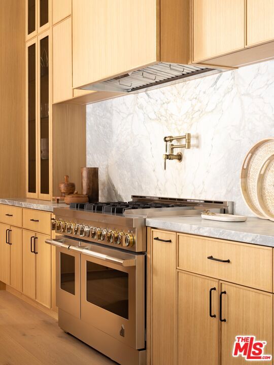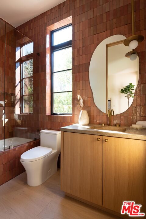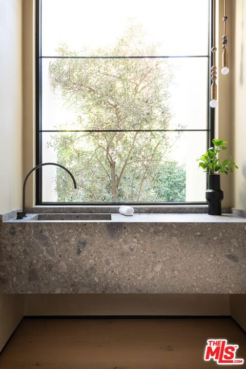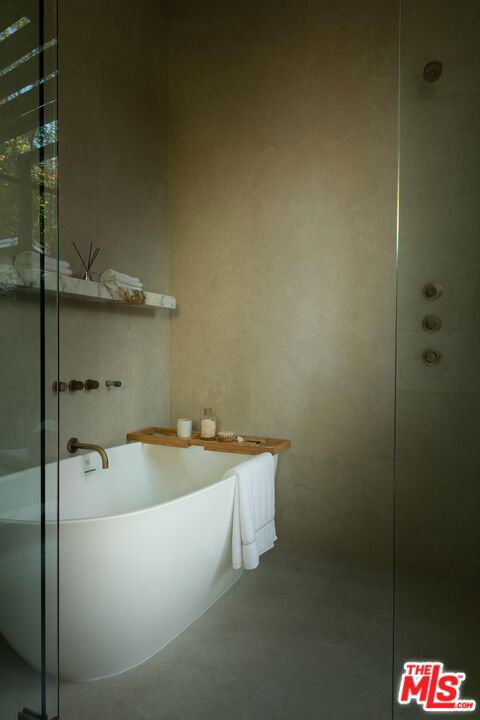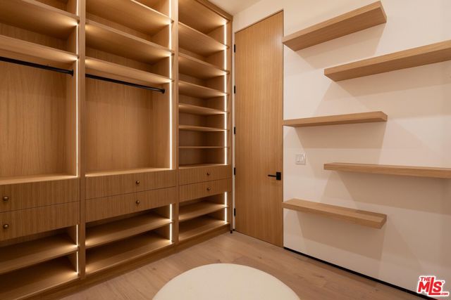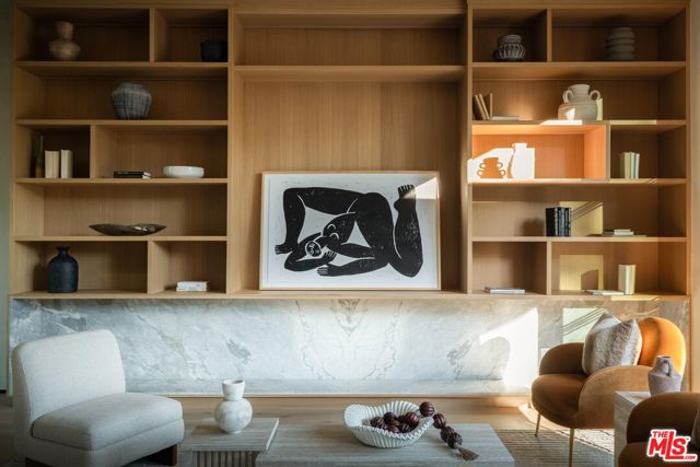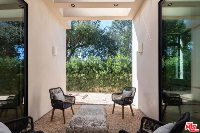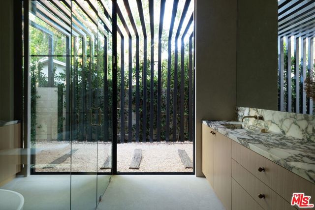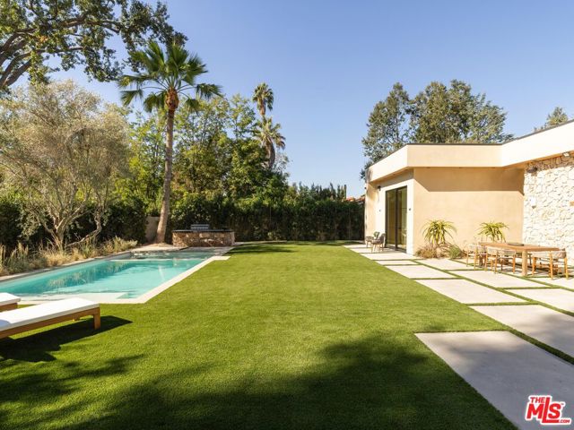 Step into this stunning single-story home situated in the highly sought-after Walnut Acres enclave of Woodland Hills. Designed as a modern nature retreat, this 4BD/4.5BA home celebrates California living and embraces the outdoors in every room. Upon entering, you are greeted by a warm living area, where white oak floors flow effortlessly into the formal dining room with an elegant built-in bar. A gorgeous atrium sits at the heart of the home, infusing the interiors with natural light and a serene connection to the outdoors. The bright kitchen is equipped with Jenn Air appliances including a dual fuel range with a chrome-infused griddle, rustic white oak cabinetry, and an expansive island that invites effortless entertaining. The adjoining family room features built-in shelving and impressive floor-to-ceiling pocket doors that open completely to the backyard, elevating the space. A stylish powder bath is conveniently positioned off the entry, ideal for guests. Tucked along the left hallway, the remarkable primary suite is designed for luxury living with floor-to-ceiling windows, a custom-designed walk-in closet, and private access to the backyard. The sleek primary bath showcases a wet room design with dual vanities, a soaking tub, an oversized shower with built-in bench, and sliding doors that open to a secluded side yard. Located on the opposite wing of the home, the three additional bedrooms include their own en-suite bath and generous closet space. Each secondary bedroom features sliding doors to its own peaceful patios, continuing the home's indoor-outdoor flow. Enjoy endless space for both entertaining and intimate evenings in the backyard, including a sparkling pool with a baja shelf, spa, built-in barbecue, expansive lawn, and multiple lounge areas surrounded by lush greenery. With exceptional craftsmanship and a premier location on Collins Street, this property captures the true essence of Walnut Acres living.
