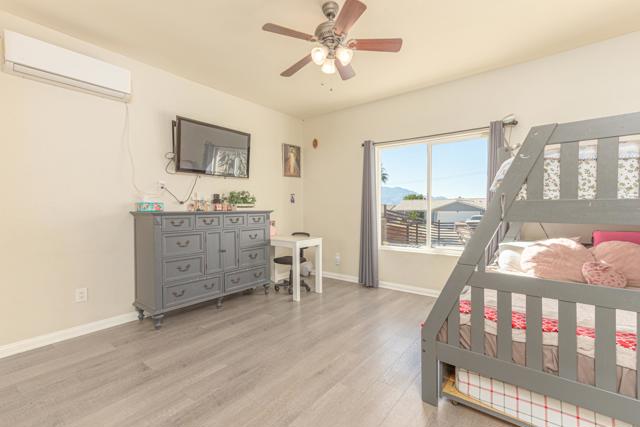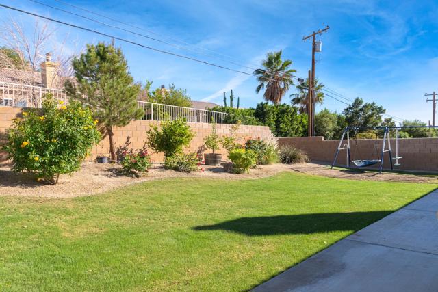 The home you've been waiting for is now available, offering both privacy and mountain views. As you tour the home, you'll be welcomed with abundant natural light, elegant tile flooring, and vaulted ceilings that enhance the home's open feel. The bedrooms have been remodeled with luxury vinyl wood flooring, and one guest room includes a mini split for added comfort. The home is equipped with double-pane windows throughout, a fireplace, and an A/C condenser approximately six years old. The kitchen invites you in with a bar seating area and generous counter space, ideal for cooking, entertainment or casual dining. The main bathroom has been tastefully remodeled with new tile in the shower and features dual sinks for convenience. Outside, the front yard showcases a desert theme landscape with rock and palm trees, both the front and backyard include timed sprinkler systems for ease of maintenance. Call for more information