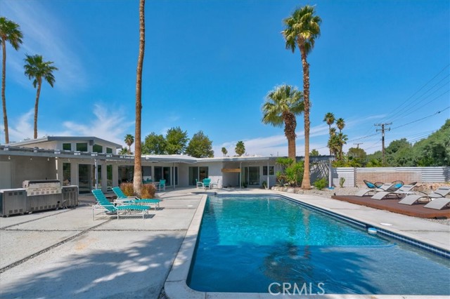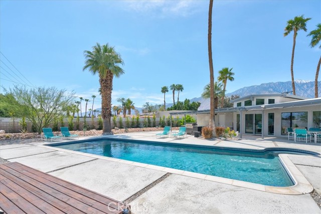 Beautiful Hugh Kaptur–Designed Home with Expansive Mountain Views Welcome to your Palm Springs retreat—an architecturally significant Hugh Kaptur home offering stunning design, modern comfort, and true vacation-style living. This beautifully updated property features 3 large bedrooms, including 2 ensuite suites, 3 full bathrooms, and 2,075 sq ft of bright, inviting living space. Sitting on just under 15,000 sq ft, the backyard is a private resort. Enjoy an enlarged heated pool, dramatic mountain views, a secluded in-ground spa, deck seating, and a built-in barbecue with a dedicated gas line—perfect for entertaining or relaxing in total tranquility. The living room is wrapped in glass, filling the home with natural light and showcasing the surrounding views. The primary suite includes a walk-in closet the size of a small bedroom, adding exceptional comfort and storage. Outside, a circular driveway and an attached 2-car garage provide convenience and curb appeal from the moment you arrive. The home is offered turn-key and fully furnished, making it ideal as a primary residence, vacation home, or exceptional Palm Springs rental opportunity. A rare architectural gem with modern amenities and a true indoor-outdoor lifestyle—this is Palm Springs living at its best.