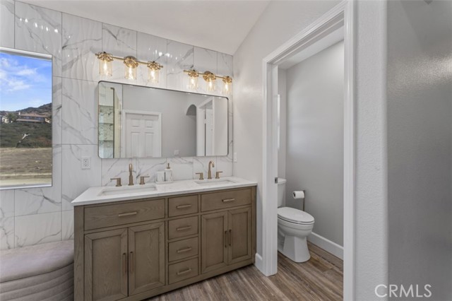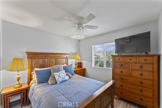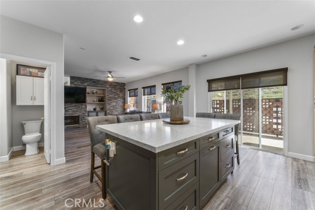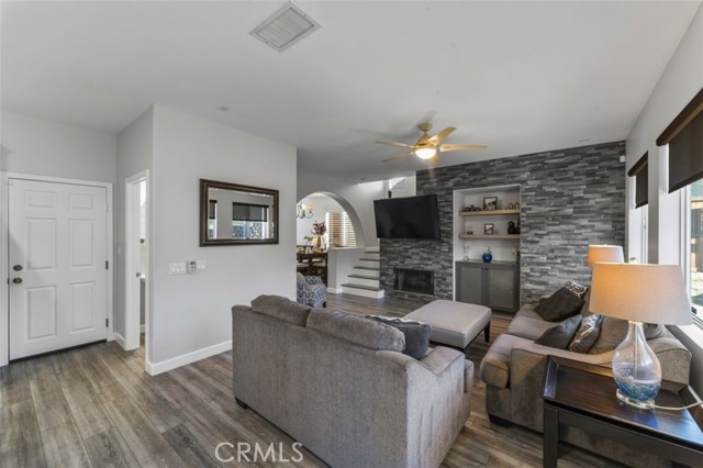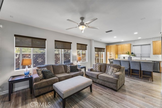 Stunningly upgraded and recently remodeled home with no rear neighbor. Must be seen to be believed! This beautiful residence showcases modern luxury and thoughtful upgrades throughout. The remodeled kitchen features quartz countertops, a full-wall backsplash, stainless steel appliances, a large center island with seating, and custom cabinetry. The inviting family room includes a custom-built media wall with shelving and a ceiling fan, perfect for relaxing or entertaining. Large living room & Dining area with a custom chandelier. Enjoy durable and stylish luxury vinyl flooring throughout the downstairs, stairs, and upper hallway, along with elegant custom plantation shutters downstairs. Upstairs, a spacious loft with a ceiling fan offers added living space and flexibility. The primary suite impresses with vaulted ceilings, a private balcony with serene hillside views, and a ceiling fan. The updated primary bath features a frameless shower, dual sinks, quartz counters, ceramic dymo calacatta wavy white 12x24, plus luxury vinyl flooring. Additional highlights include a paid-off solar system, upgraded Rheem variable-speed furnace and evaporator coil, Nest Generation 3 thermostat, high baseboards, and a new water main . The backyard offers a covered patio with a sitting area and privacy, plus exterior security cameras for peace of mind. This home combines comfort, style, and efficiency — all in a prime location. Don’t miss your chance to see it!