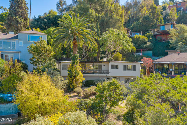 Circa 1957 private Silver Lake Retreat with Panoramic Views. Perched perfectly to capture stunning views from nearly every room, this private Silver Lake retreat embodies the essence of California indoor/outdoor living. Enter through a secluded courtyard and feel the home's elevated presence from the moment you arrive. A light-filled living room welcomes you with floor-to-ceiling windows on every side, creating a bright and airy space that seamlessly connects to two incredible outdoor areas--a spacious view deck and an open-air patio--ideal for relaxing or entertaining while enjoying the sweeping vistas.The original kitchen showcases mid-century charm and awaits your personal touch. The home features three en suite bedrooms, plus a flexible fourth room that can serve as a home office, guest room, or creative space. The mostly flat rear yard offers a blank canvas to design your dream outdoor retreat--add a garden, pool, or gathering area to make it your own. Located just moments from the Silver Lake Reservoir, trendy shops, and top-rated restaurants, this home offers privacy, potential, and an unbeatable location in one of L.A.'s most desirable neighborhoods.