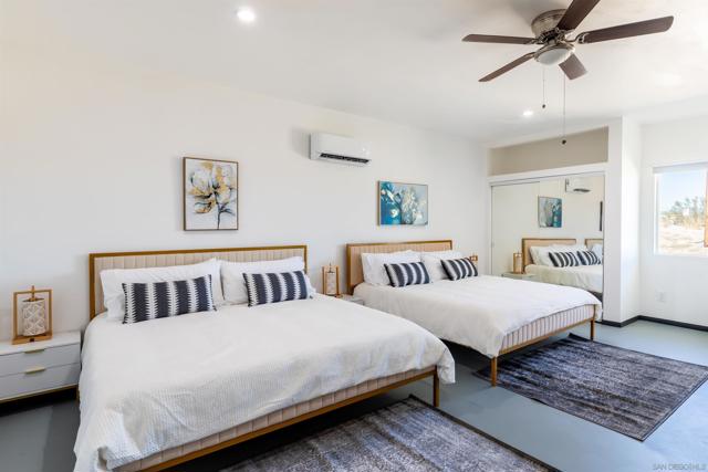 Desert living, redefined on 5 acres of Joshua Tree heaven. Perfectly set between two entrances to Joshua Tree National Park, this newly remodeled, single-story home offers a rare combination of modern luxury and natural beauty. Step inside, and you’ll feel right at home in the bright, open layout. The heart of the house—the kitchen—is a showstopper. With custom Kraft Maid cabinets, granite countertops, a gorgeous white tile backsplash, top-of-the-line appliances, and an oversized island with room for 3 bar seats, it’s a space built for everything from casual breakfasts to big gatherings. Arched doorways and sliding barn doors lead you from one well-designed space to another, including each of the five-bedroom suites, all spacious enough for a king-sized bed and complete with their own private ensuite bathroom. Everyone gets their own little slice of luxury here, making this home ideal for hosts. But the real magic happens outside. The property is your personal oasis, offering a quiet, private escape from the world. Start your day with coffee on the patio, enjoying the stunning desert sunrises, and end it in the hot tub or around the firepit, soaking up the famous Joshua Tree night skies. The 360-degree views are nothing short of spectacular—you’ll feel like you’re living in a painting. Despite the peaceful setting, you’re just minutes from hiking trails, campgrounds, and local shops. Whether you’re looking for a forever home, a vacation retreat, or a property that doubles as an investment, this one has it all.