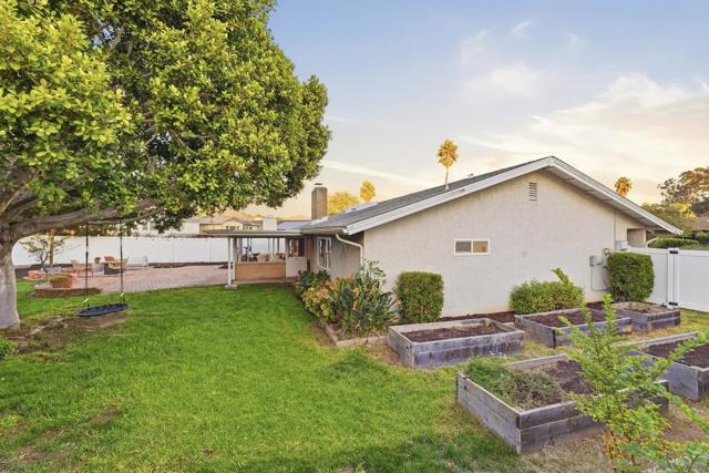 Step into this bright and inviting 3-bedroom, 2-bath home that perfectly blends comfort, function, and charm. The open floor plan connects the main living areas and kitchen- ideal for connecting, entertaining, and enjoying everyday life. The fenced backyard is beautifully landscaped with mature & fruiting trees, raised garden beds and a brick patio where you can enjoy your morning coffee or host your next BBQ. A sunny enclosed bonus room adds about 200 sq. ft. of flexible living space ideal for an additional sitting room, reading nook or office. Inside, you’ll find a cozy fireplace in the family room and a kitchen with granite countertops and plenty of storage. The primary suite features a walk-in closet and dual-vanity bathroom, with views of backyard and surrounding hillsides from your bedside. This home comes equipped with Solar and has durable luxury vinyl plank throughout. Located in a walkable neighborhood (No HOA) with parks & trails, shopping and freeways nearby, 1350 La Mirada offers the perfect balance of convenience and comfort.