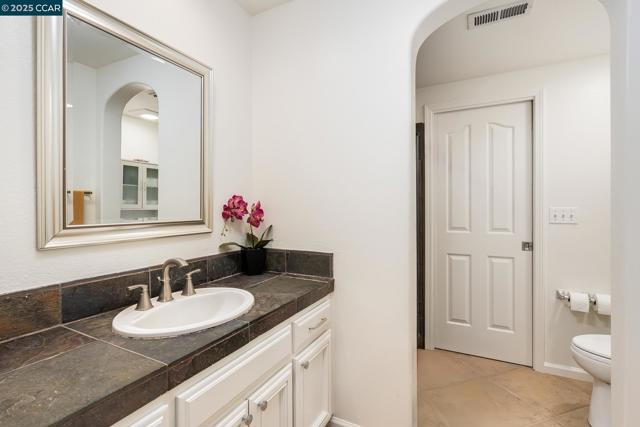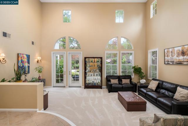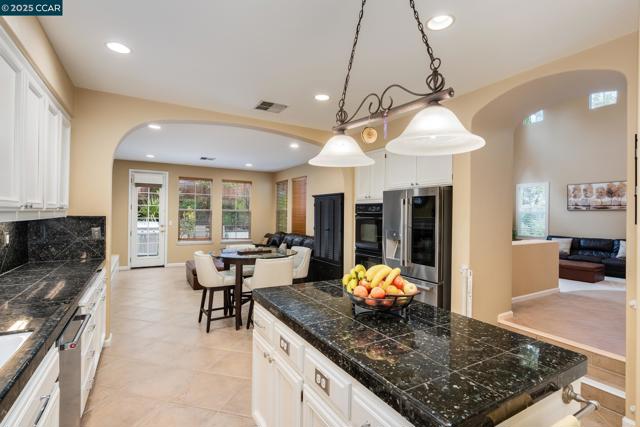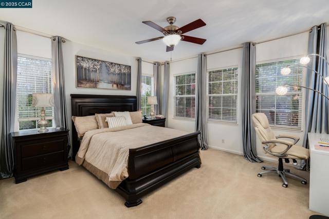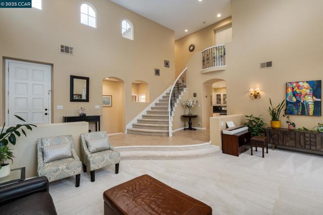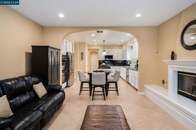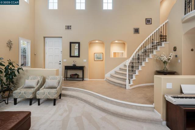 Nestled in the sought-after Bridges community, this beautifully maintained residence has an entrance on the east side of the lot and is fully open to the northeast. Enjoy picturesque views of Mt. Diablo framed by lush greenery and the park just across the street. The gourmet kitchen features newly painted cabinetry, sleek granite countertops, stainless steel appliances, and a center island. The adjoining family room offers a cozy fireplace and windows overlooking the serene backyard. A convenient downstairs bedroom and full bath provide flexibility for guests or multigenerational living. Upstairs, two spacious secondary bedrooms offer comfort and privacy, while the primary suite serves as a tranquil retreat with an ensuite bath featuring dual vanities, a soaking tub, walk-in shower, and large walk-in closet. Step outside to a private backyard oasis with colorful hydrangeas, mature landscaping, firepit and charming string lights. The built-in outdoor grill and patio set the stage for al fresco dining. Additional highlights include fully paid solar panels, freshly painted interiors, high ceilings and an abundance of natural light. Ideally located near parks, recreation, and top-rated San Ramon Valley schools.