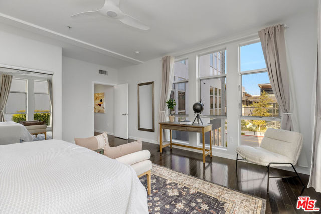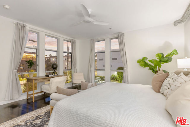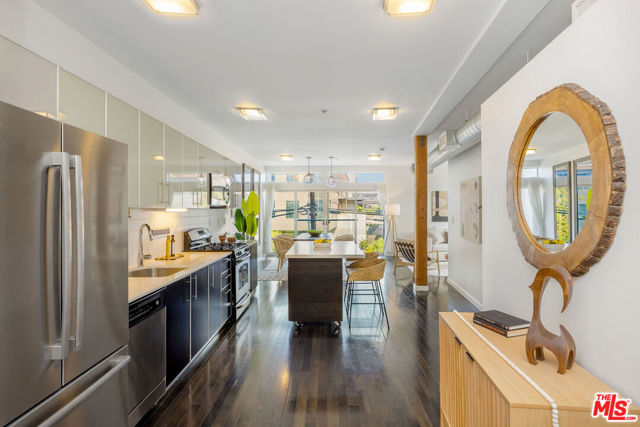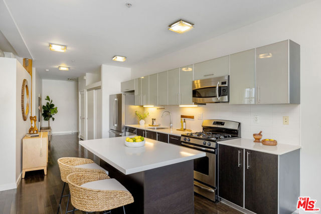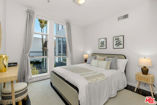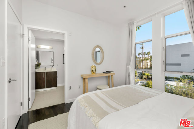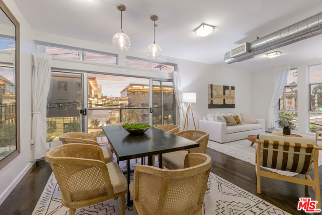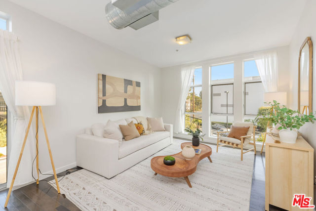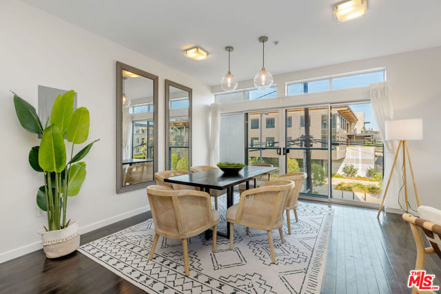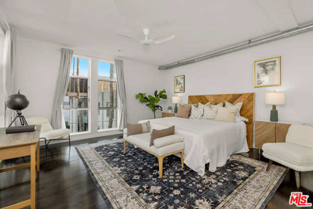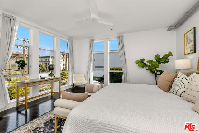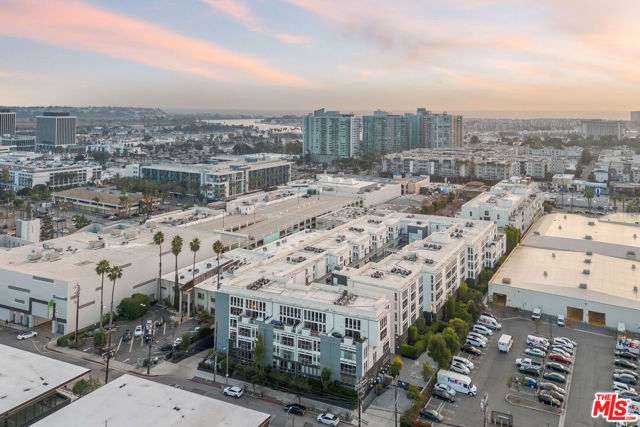 Stunning corner-unit loft flooded with natural light in the sleek and modern Marina Lofts District. This spacious 2-bedroom, 2-bath condo showcases dramatic floor-to-ceiling windows that highlight the benefits of its expansive corner floor plan. The open-concept living and dining areas are framed by high ceilings and sliding glass doors, creating an entertainer's dream next to the chef's kitchen, which features stainless steel appliances, a stylish tile backsplash, and custom cabinetry. Both bedrooms are generously sized, with the primary suite offering a spa-like en-suite bathroom for ultimate relaxation. Additional conveniences include in-unit laundry, central air and heat, and two tandem parking spaces. Enjoy resort-style amenities such as a fully equipped fitness center, Jacuzzi and dipping pool, spa, fire pit, BBQ area, and a tranquil interior courtyard. The gated community also provides ample guest parking, bike storage, private storage containers, and EV charging stations. Perfectly situated just minutes from the beach, Marina del Rey Boardwalk, Trader Joe's, Marina Marketplace, theaters, restaurants, bike paths, and endless entertainment options.