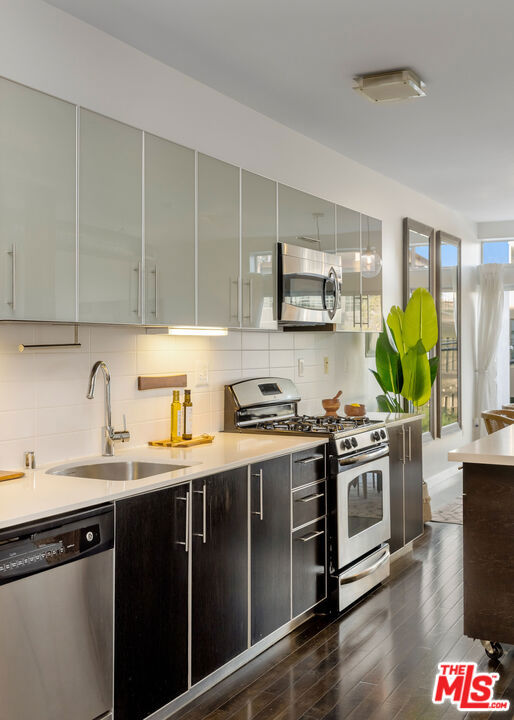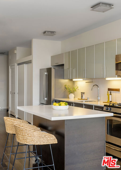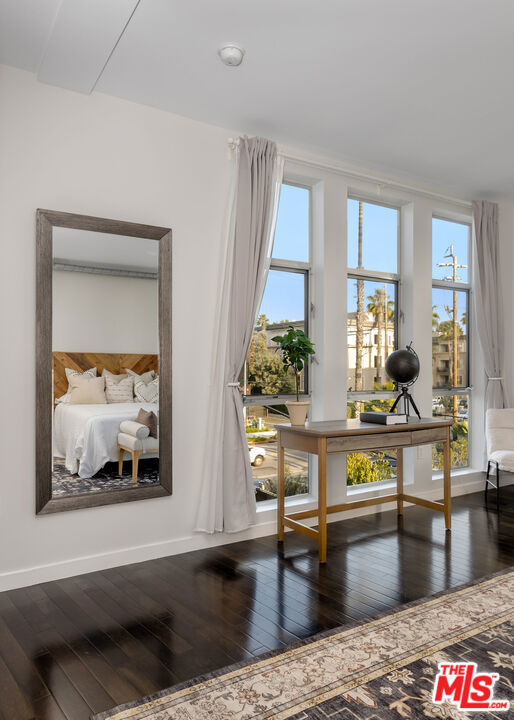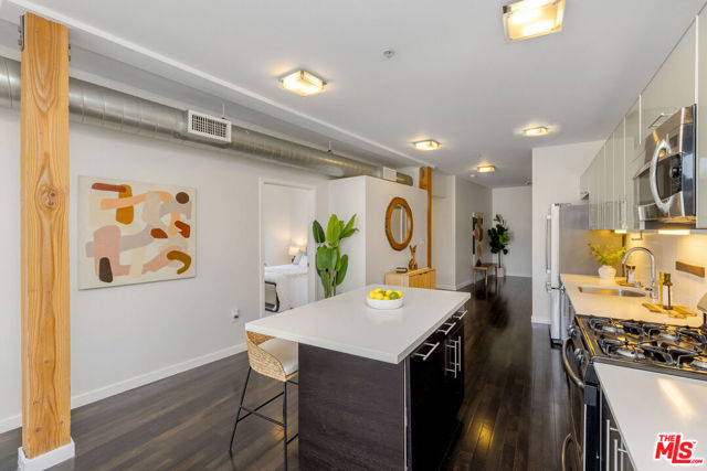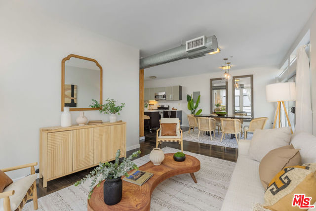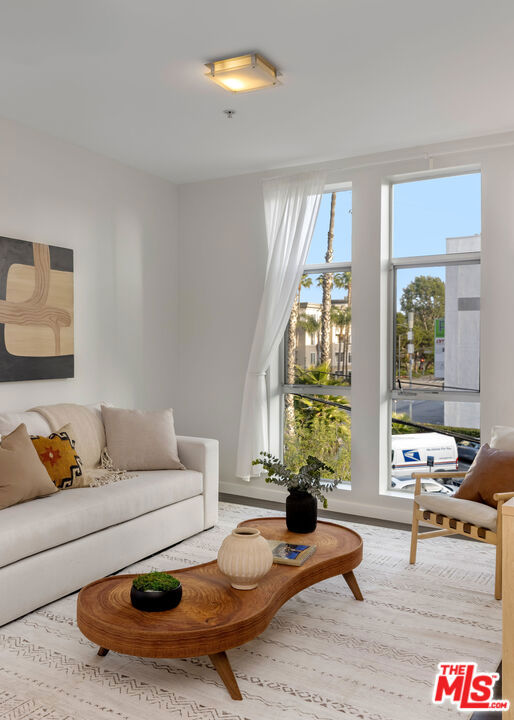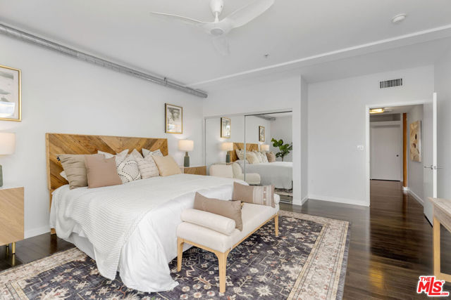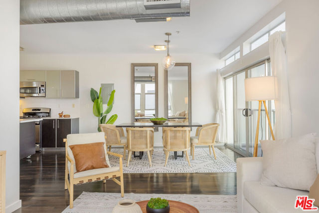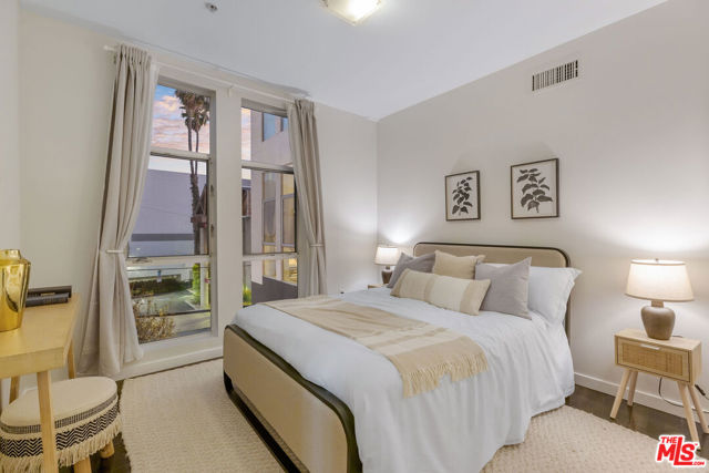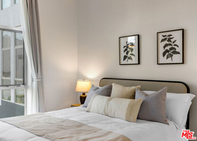 Stunning corner-unit loft flooded with natural light in the sleek and modern Marina Lofts District. This spacious 2-bedroom, 2-bath condo showcases dramatic floor-to-ceiling windows that highlight the benefits of its expansive corner floor plan. The open-concept living and dining areas are framed by high ceilings and sliding glass doors, creating an entertainer's dream next to the chef's kitchen, which features stainless steel appliances, a stylish tile backsplash, and custom cabinetry. Both bedrooms are generously sized, with the primary suite offering a spa-like en-suite bathroom for ultimate relaxation. Additional conveniences include in-unit laundry, central air and heat, and two tandem parking spaces. Enjoy resort-style amenities such as a fully equipped fitness center, Jacuzzi and dipping pool, spa, fire pit, BBQ area, and a tranquil interior courtyard. The gated community also provides ample guest parking, bike storage, private storage containers, and EV charging stations. Perfectly situated just minutes from the beach, Marina del Rey Boardwalk, Trader Joe's, Marina Marketplace, theaters, restaurants, bike paths, and endless entertainment options.