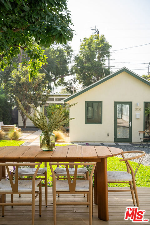 Private and ideally located, this Atwater Village compound offers three distinct residences: a front 2 bedroom, 1.5 bathroom main house, a detached 1 bedroom, 1 bathroom ADU, and an additional freestanding studio - all on an expansive and expertly landscaped 6,599 sq. ft. lot. The front home is a striking 1928 Tudor residence, offering a thoughtful floorplan with elevated finishings. Set back from the street, a newly landscaped front yard leads to the welcoming front patio. Inside, recently refinished original hardwood floors run throughout, grounding the home in rich, historic patina. The bright and airy living room is anchored by an architecturally expressive fireplace and flows into the generous dining area, where custom built-in cabinetry creates a natural gathering space. Sight lines extend through the kitchen and out to the backyard, establishing an effortless connection between everyday life and the outdoors. The kitchen is both functional and inviting, with newer appliances and natural wood cabinetry. Down the hall, two comfortable bedrooms sit on opposite ends, including an ensuite primary bedroom with its own access to the deck. A beautifully updated half bath sits conveniently off the main hall. French doors from the kitchen open to an expansive 250 sq. ft. deck, which flows to the home's generous backyard planted with mature fruit trees avocado, guava, kumquat, Meyer lemon, loquat, and prickly pear - a true California landscape. The newly constructed ADU offers a fully independent 1 bedroom, 1 bathroom dwelling with modern finishings, natural light, a full kitchen, and its own private entrance - ideal for guests, extended family, or rental income. An additional detached studio sits just behind the ADU, offering a flexible space suitable for a gym, home office, or recreation room, thereby adding meaningful versatility to the property. Improvements have been completed steadily and thoughtfully over the years - refreshed bathrooms, new HVAC and Nest controls, exterior and interior paint, refinishing of original wood floors, a whole-house Culligan water filtration system, a newly added archway, and retroactive permitting of the detached studio - all adding layers of comfort and long-term value. Ideally situated in the heart of Atwater Village, the home sits moments from the LA River walking path, Dune, Proof Bakery, La Colombe, All'Acqua, and the weekly Atwater Sunday Farmers Market. Charming neighborhood blocks, beloved cafes, and independent shops surround the home, offering both convenience and community - a quiet residential pocket with effortless access to one of LA's most vibrant and creative enclaves.