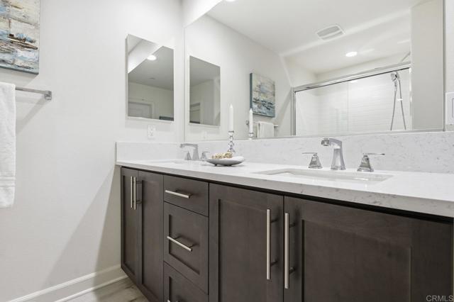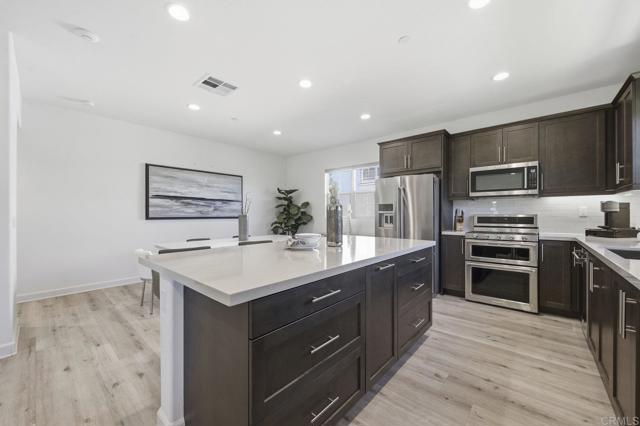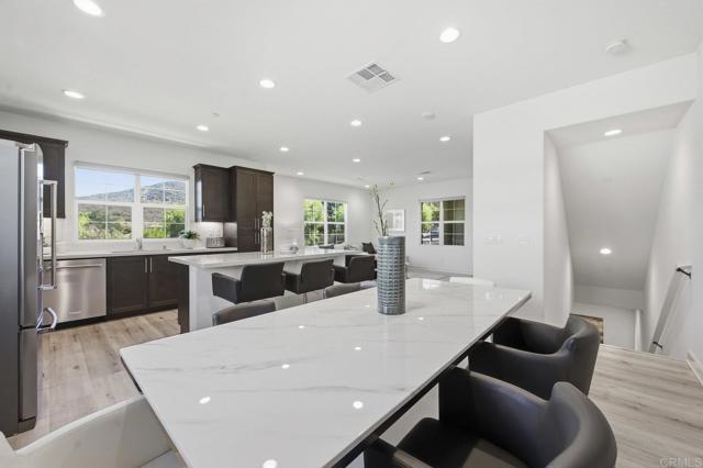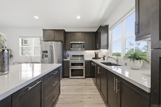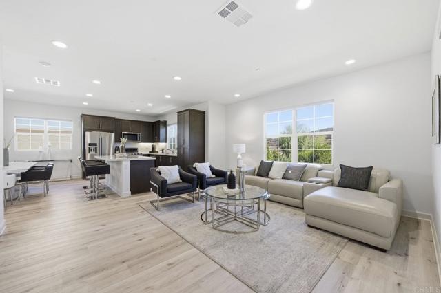 Experience modern luxury living at 892 Slate Street in the highly desirable Latitude community of Rancho Tesoro in San Marcos. This immaculate 3 bedroom, 2.5 bath, 1,933 sq. ft. residence blends sophisticated design with contemporary comfort. High ceilings and an open-concept floorplan create a spacious, light-filled interior enhanced by designer upgrades throughout. The gourmet kitchen features premium finishes and seamlessly connects to the living and dining areas creating a perfect environment for entertaining or relaxed everyday living. Featuring the largest floorplan in the community and refined details including quartz counters, luxury vinyl plank flooring, and upgraded window treatments elevating the entire home. Enjoy smart home technology, energy-efficient owned solar, tankless water heater, stackable laundry as well as an attached 2 car garage with plenty of room for storage. The gated HOA community features resort style amenities including pool, BBQ and picnic areas plus a tot lot for outdoor enjoyment. Ideally located near shopping, dining, top-rated schools with easy freeway access this exceptional condo embodies effortless luxury in the heart of San Marcos. 892 Slate Street is not to be missed!