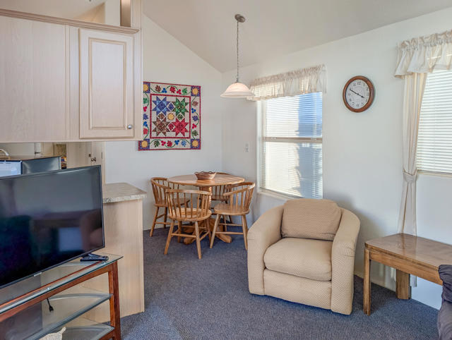Located just steps from the Clubhouse and centrally positioned within the park, this meticulously maintained residence offers striking desert and mountain views. The property boasts an expansive outdoor entertainment area, including a spaciously covered deck with unobstructed vistas of the surrounding landscape. Encompassing approximately 600 sq. ft., the home features one bedroom and one bathroom, providing efficient yet comfortable living accommodations. Thoughtful design elements throughout enhance convenience, while the exterior presents significant opportunities for personalized landscaping. Caliente Springs is an exclusive 55+ gated community offering a comprehensive array of amenities, including a mineral hot spring-fed pool and spas, 8 pickleball courts, tennis courts, a 9-hole golf course, a library, and a vibrant social environment. Residents are encouraged to take advantage of these facilities to foster community engagement. Please note that the lot is not owned; space rent is $811.