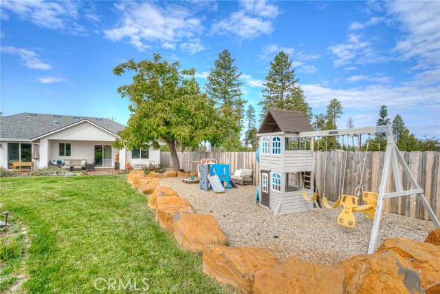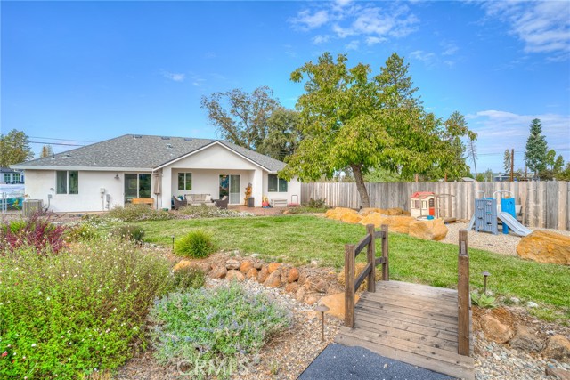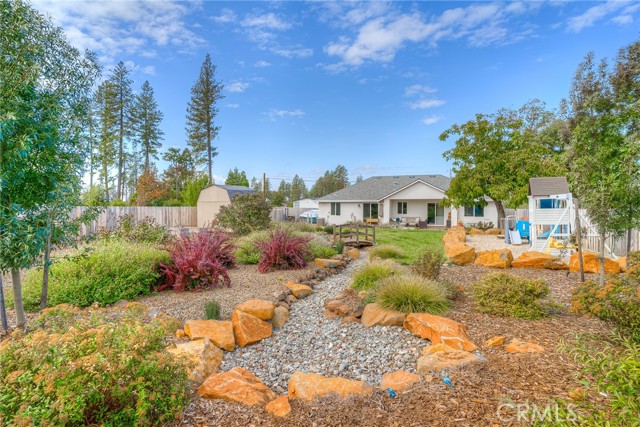 This is your opportunity to own a beautiful Farmhouse featuring an open floor plan with 3 beds, 2 full baths, and fenced RV or boat parking. The beautifully landscaped backyard has a large patio outside the sliding glass doors from the dining area and the primary suite. It also includes a nice lawn, rocked area (where currently they have a playset), a bridge leading over a dry creek bed to raised garden beds and a shed. The front yard is landscaped for simplicity and low maintenance! The spacious kitchen has a built-in pantry, floor to ceiling cabinets, stainless steel appliances, and quartz countertops. The primary suite offers a private sliding door to the backyard, a walk-in closet, double sinks in the bathroom as well as a private toilet and separate shower and tub with plenty of space. A new septic system (tank and leech lines) was placed when the home was built in 2021. Don't miss this opportunity! This one won't last long!