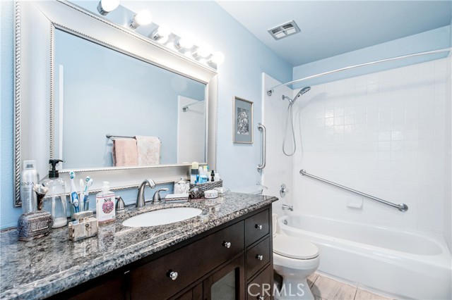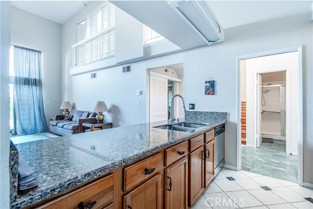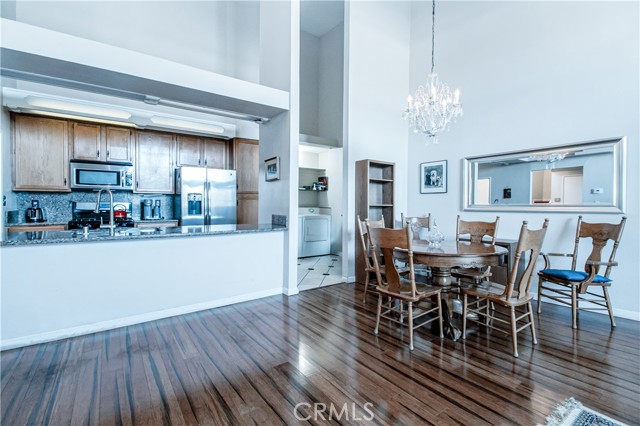 This is a must see unit. Come fall in love. This gorgeous top floor 2 bedroom, 2 bath condo will attract you with its open floor plan, extremely high ceilings and tons of natural light. The majestic double door entrance leads you in, towards an elegant crystal chandelier and a spacious living room with marble fireplace. The living room opens to a large patio with an amazing view of mountains and the city. The patio connects the living room with the primary bedroom. This well-designed condo offers everything you need; bamboo floors in the living and dining rooms, quartz counter tops in the kitchen, in unit washer and dryer, and plenty of closet space. The well-maintained complex with a heated pool and jacuzzi has a resort style atmosphere. The two car parking garage is on ground level inside the building. It is in a prime location near Ventura Blvd in Encino, close to great shopping, fabulous restaurants and night life. All of this makes this unit very attractive and desirable, and it can be yours.