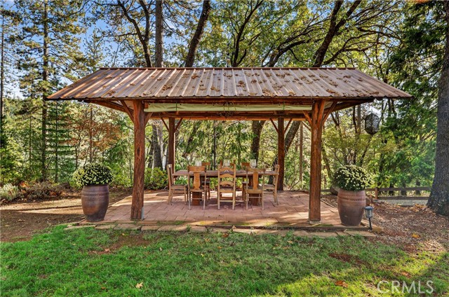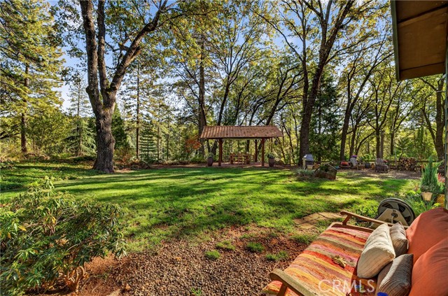 Nestled in the heart of Forest Ranch's tranquil foothills, just minutes from the vibrant pulse of Chico, this captivating cul-de-sac gem at 15001 Culiacan Ct offers a fully furnished blend of rustic charm and modern comfort. Imagine waking up to the whisper of towering Ponderosa pines, the golden glow of Sierra Nevada sunrises filtering through your windows, and the freedom of 41 acres of private land—perfect for your dream garden, equestrian pursuits, or simply unwinding in nature's embrace. Step inside this meticulously maintained single-family retreat, where an open-concept living space flooded with natural light invites gatherings and quiet evenings alike. The chef's kitchen boasts custom cabinetry, stainless steel appliances, a refurbished wedgewood stove that's perfect for your culinary creations. A spacious formal dining room surrounded by picture windows of the stunning views, is the perfect spot for casual meals or entertaining guests. Retreat to the primary suite, a serene sanctuary with incredible views through the wall of sliding glass doors and transom windows. The well appointed en-suite bath features a walk-in closet with stacked washer dryer, oversized walk in shower with hand made tile and top end plumbing finishes, custom made vanity as well as a private water closet. The second bedroom and en-suite bathroom provide ample space for family and friends. Should you need more space, the detached guest cottage offers a comfortable living space by day that converts to a restful bedroom by night with a private bathroom complete with shower. The inclusion of the vintage airstream trailer provides additional accommodations and kitchen facilities for meal prep. Outside, the magic unfolds: a deck overlooks lawns and wildflower meadows, with a fire pit ready for starry-night storytelling. The grounds include a detached workshop for hobbyists, RV parking for adventurers and an indulging swim spa. A small hike leads to a sauna tucked in the forest. With low-maintenance landscaping this property isn't just a home—it's a legacy of effortless living. In Forest Ranch, where community spirit thrives amid hiking trails, fishing spots, and wine country escapes, 15001 Culiacan Ct is more than an address—it's your gateway to elevated everyday bliss. Priced to sell and ready for its next chapter, don't miss the chance to claim this foothill haven. Schedule your private tour today and let the mountains call you home!