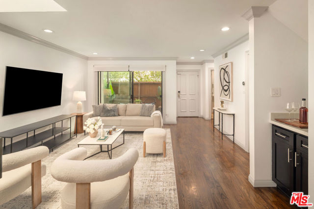 Experience luxury living in the heart of West Hollywood with this sophisticated 2-bedroom, 3-bath townhouse in an exclusive, gated 5-unit building. Spanning nearly 1,400 sq. ft., this stunning home offers direct access to your residence from its spacious garage, gorgeous hardwood floors, and spacious bedroom suites with spa-inspired en-suite baths. Illuminated by a dramatic skylight, the living room is infused with natural light as it opens to a private patio, while the chef's kitchen is a dream for culinary enthusiasts, complete with stainless steel appliances, elegant finishes and a pull-up counter for your impromptu meals. Enjoy the feel of a single-family home with no one living atop or below you, the convenience of in-unit laundry, a low monthly HOA and exceptional privacy, all nestled on one of West Hollywood's most sought-after and neighborly streets. Live amidst neighborhood conveniences, vibrant dining and shopping. This offering is contemporary elegance at its finest, and a truly rare opportunity. Welcome home!