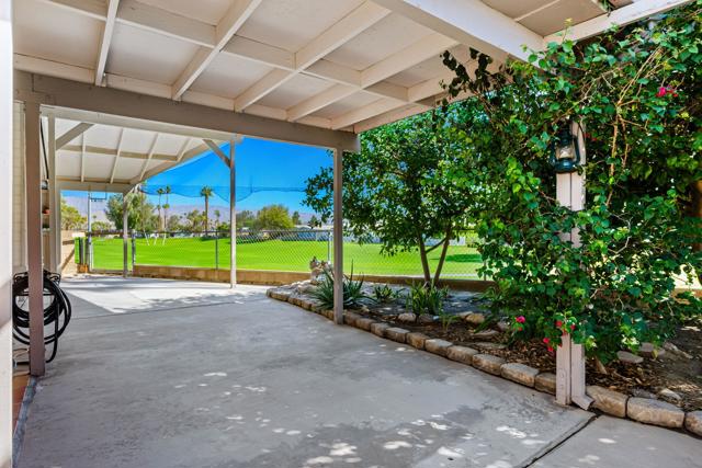 Welcome to Tri-Palm Estates, a vibrant 55+ golf community where you own the land! Enjoy unlimited golf for two owners, access to three sparkling pools, a clubhouse, and an on-site restaurant--all with low monthly HOA fees. Conveniently located with quick access to I-10, this home is just minutes from the new Disney Cotino Village, Costco, Sam's Club, Acrisure Arena, and an array of shops and restaurants in Rancho Mirage and Palm Desert. This property is situated on the 18th hole with a direct gate access to the golf course. Step inside and you'll discover a home that offers plenty of space for two people to live comfortably with separate entrances--ideal for guests, friends, or a roommate. You'll love the spacious primary suite with a huge walk-in closet and large bathroom, as well as a large separate laundry room with lots of storage for added convenience. An additional room will work as a den or office. Come see all that's waiting for you in this active and welcoming community!