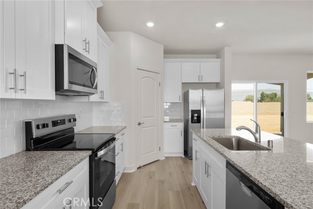 Hermosa Make a lasting impression with this gorgeous new construction home in Apple Valley. Designed for modern living, this single-story home offers three bedrooms and two bathrooms, exuding charm and warmth throughout. The open-concept layout seamlessly connects the kitchen and family room, making it the perfect space for entertaining. Retreat to the master suite, which features a luxurious en-suite bathroom with a spacious shower and a walk-in closet. This home includes an array of high-end upgrades at no additional cost, such as granite countertops, energy-efficient kitchen appliances, a Wi-Fi-enabled garage door opener, solar panels, and more.