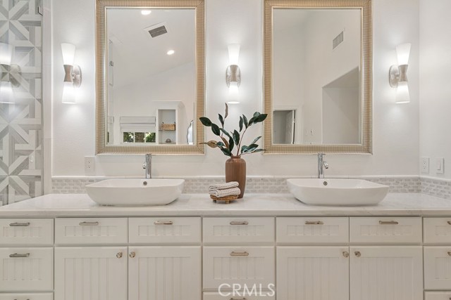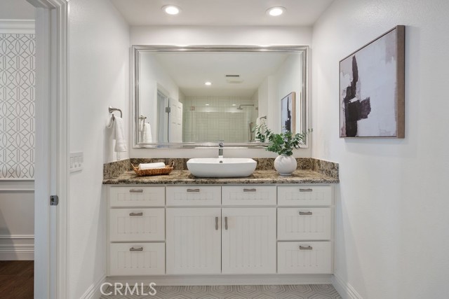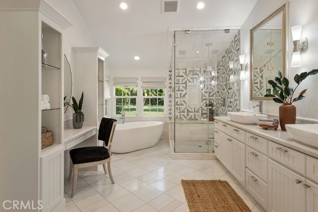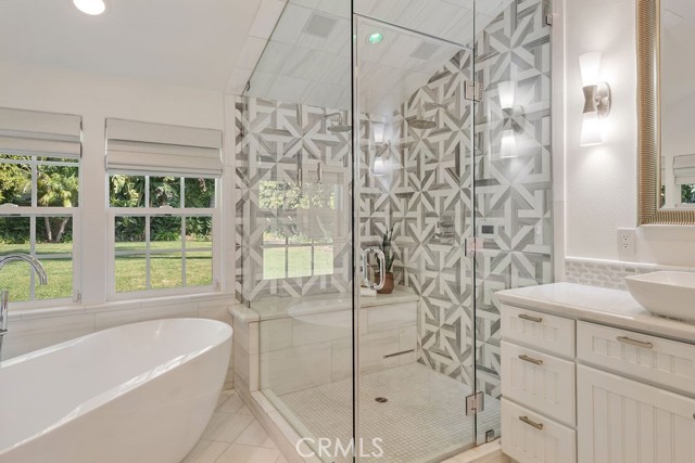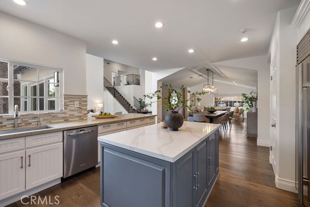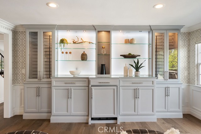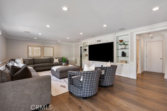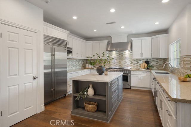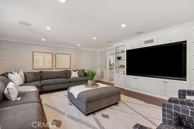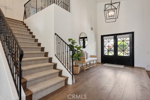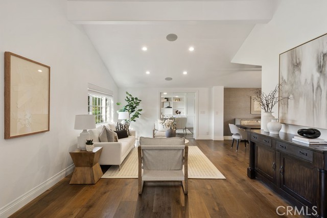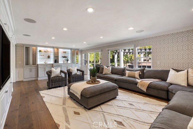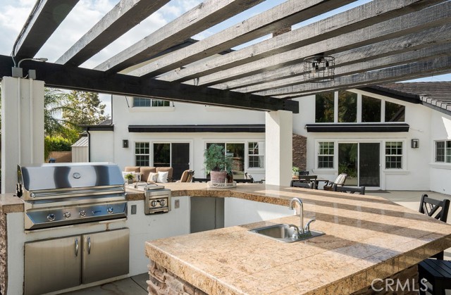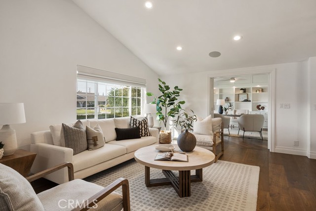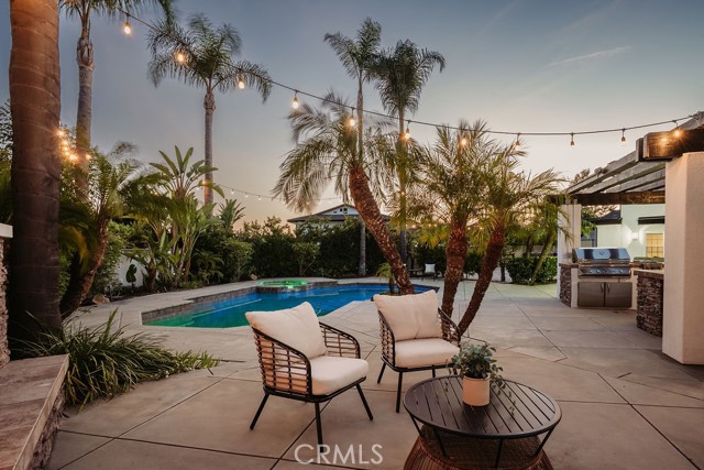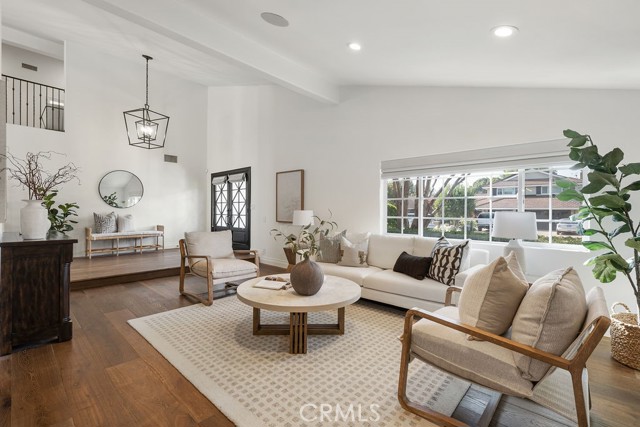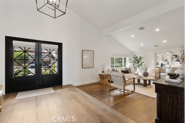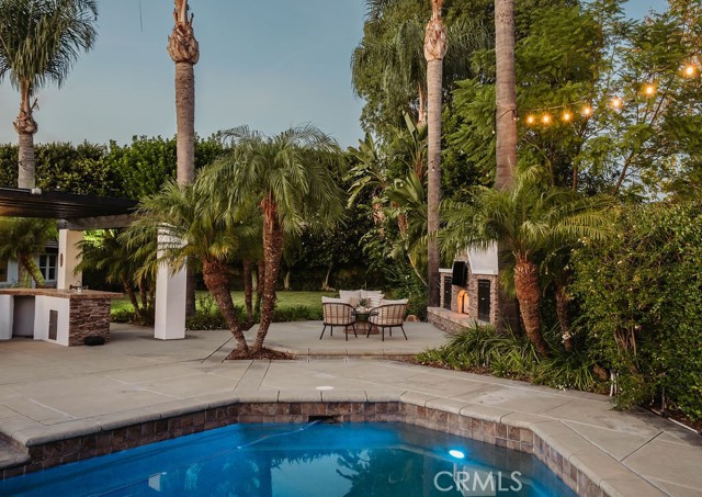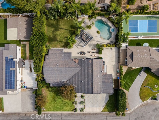 Exquisite custom estate on a quiet cul-de-sac in the heart of Villa Park. Set on a sprawling 20,000 sq ft lot, this remodeled residence blends timeless design with resort-style living. A grand double-door entry opens to soaring ceilings, wide-plank wood floors, and light-filled living spaces that flow seamlessly from formal rooms to an expansive great room with a dramatic fireplace and walls of glass overlooking the backyard. The kitchen features custom cabinetry, quartz countertops, a commercial-grade range, stainless steel appliances, and an oversized island with seating and backyard views. An adjoining bonus room is perfect for entertaining, complete with a built-in media center, surround sound, and designer bar. The main-level primary suite offers vaulted ceilings, dual closets, and a luxurious spa bath with a steam shower, soaking tub, and custom stone finishes. Outside, enjoy the ultimate Southern California lifestyle with a sparkling pool, sports court, built-in BBQ and bar, outdoor fireplace, full bath, and expansive grassy area. Additional highlights include motorized awnings, whole-home filtration system, integrated sound and security systems, and impeccably maintained landscaping. A rare opportunity to own a true Villa Park showpiece that defines elevated, modern living.