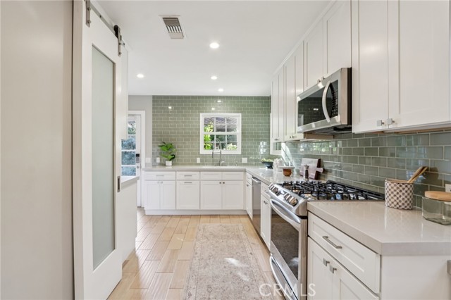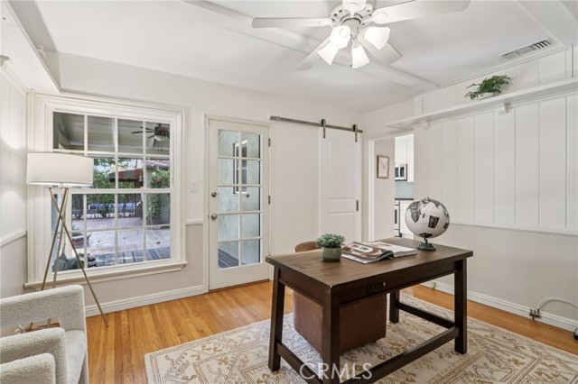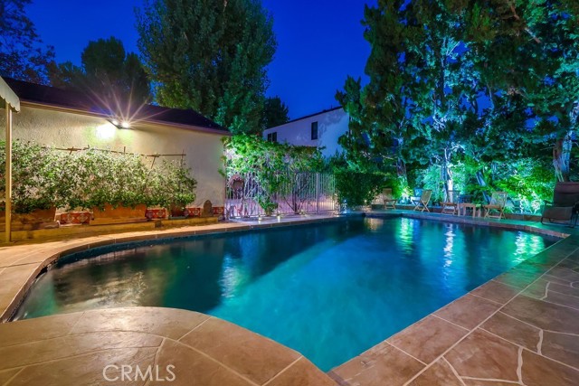Storybook charm nestled in lush greenery, this beautifully updated Sherman Oaks residence blends timeless character with modern comfort. Inside you’ll find a bright, inviting layout featuring thoughtfully renovated kitchen and bathrooms, freshly painted walls, and hardwood floors throughout. The third bedroom, currently utilized as an office den with its own 3/4 bath, offers flexibility for a primary suite, work or guests. Step outside to an entertainer’s paradise - an expansive backyard with stone and paver hardscaping, multiple lounging and dining areas, and the sparkling solar-heated pool. The two-car garage features an EV charger, additional 220V outlet, custom cabinetry and storage, and a soundproofed studio ready for music recording, podcasting, or an auxiliary office. This is a rare opportunity to own a truly special home that captures the best of California living.