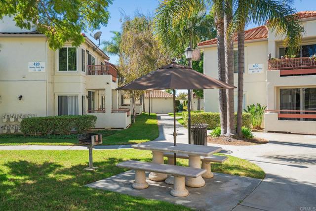 Upstairs condo with vaulted ceilings and tranquil park-like views. This beautiful community offers a coastal lifestyle just minutes from the beach. The open layout makes it easy to cook, dine, and relax, with durable flooring throughout and no carpet. The primary suite provides comfort and privacy with its own patio and peaceful view, while the second bedroom offers flexibility for guests, a home office, or creative space. Enjoy resort-style amenities including a pool, spa, clubhouse, fitness center, tennis court, and putting green. AT&T Fiber Internet keeps you connected for streaming, gaming, or remote work. HOA covers water, sewer, and trash for added convenience. A detached garage plus a designated parking spot offer practical value and security. Close to beaches, dining, shopping, and freeway access, this home combines comfort, convenience, and coastal charm, an easy place to settle in and enjoy the Southern California lifestyle.