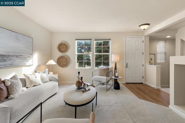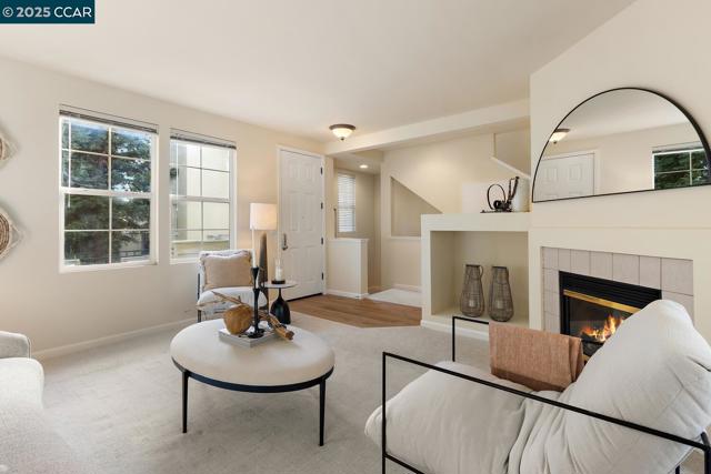 Modern townhouse within walking distance to charming downtown Pleasant Hill with great restaurants, shopping, and entertainment. Commuting is a breeze with freeway access and the Pleasant Hill BART station minutes away. Inside this multi-story townhouse you'll find over 1,500 square feet of contemporary living space in a floor plan that is laid out for both entertaining and privacy. The main floor of the home is a great communal space with a seamless flow from the Living Room open to the Dining Room, which is adjacent to the expansive Kitchen featuring an abundance of oak cabinetry and plenty of counter space for meal prep. All three rooms are light and bright with multiple windows to allow in lots of natural light. A gas fireplace in the Living Room turns on with a flip of the switch providing you with instant ambiance on chilly evenings. The half-bath is conveniently located on the main floor so that you don't have to worry and there’s a large private patio off the Living Room. The Primary Bedroom Suite is a generous size with an attached bath and a large walk-in closet. A secondary Bedroom also has its own attached full bath. Laundry closet with washer/dryer and tons of storage in attached garage. Desirable features like high ceilings, recessed lights, gas stove and more!