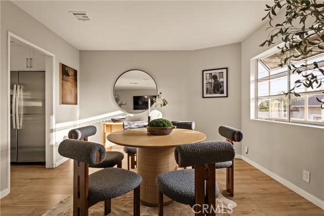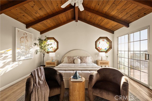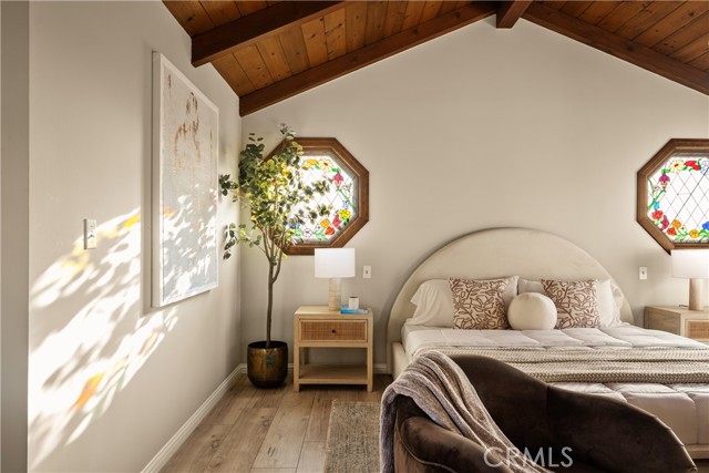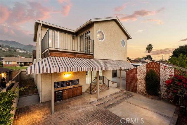 Nestled on a peaceful, tree-lined street in the coveted Burbank foothills, this timeless Ben Mar residence blends classic California charm with thoughtful modern updates. Lovingly maintained and upgraded over five decades, this four-bedroom, two-bath home radiates warmth and comfort from the moment you arrive. Inside, natural light pours across wide-plank wood floors, guiding you through the connected living and dining room—each designed for effortless flow and everyday gathering. A stately fireplace anchors the living space, complemented by curated modern finishes and serene mountain views through expansive windows. The reimagined kitchen is a showpiece of functionality and design, featuring shaker cabinetry, quartz counters, brass hardware, and stainless steel appliances. A cozy breakfast nook captures morning sunlight and frames picturesque foothill views. Upstairs, the primary suite feels like a private retreat beneath soaring wood-beam ceilings. Unique stained-glass windows add character, while the updated ensuite bath dazzles with marble-style tile, a walk-in rain shower, and elegant brass accents. Step out to your private balcony and enjoy sweeping sunset views over the valley. The backyard is perfect for entertaining, complete with a spacious covered patio, built-in BBQ kitchen, and lush surroundings ideal for alfresco dining. Recent upgrades include a new roof, copper plumbing, vinyl and aluminum windows, and central air and heat for year-round comfort. Located moments from hiking trails, top-rated schools, and the heart of Burbank’s dining and entertainment scene, 1819 Richard Street offers the best of foothill living—classic, comfortable, and beautifully renewed.