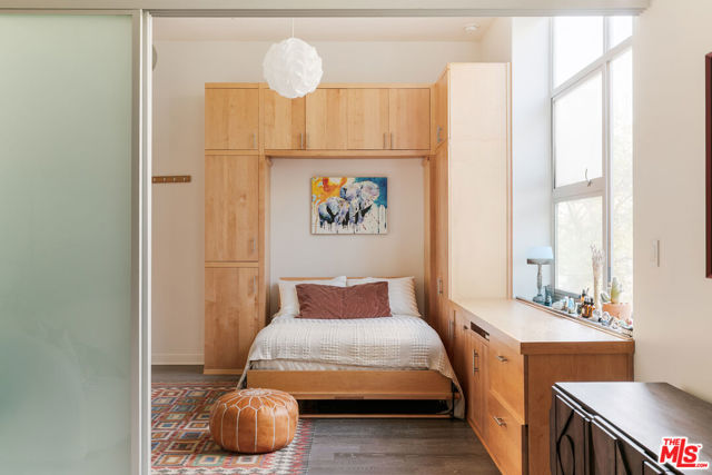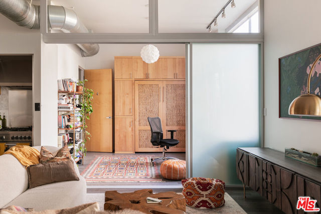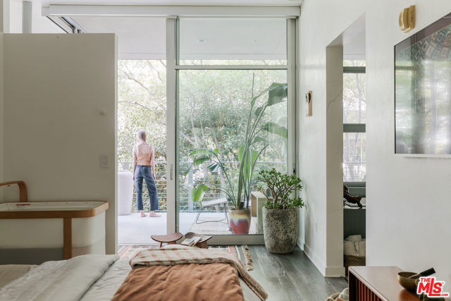 Located in the vibrant Marina del Rey Arts District, this stunning 2-bed, 2-bath loft blends modern design with a warm, organic feel. Set in a coveted courtyard position within Gallery Lofts, the home showcases soaring 11-foot ceilings, expansive floor-to-ceiling windows, and oversized Fleetwood sliders that open onto a generous 33-foot balcony enveloped by trees. The result is an airy, private retreat with effortless indoor/outdoor living. Automatic blinds provide a refined finishing touch and easy light control. The contemporary kitchen is outfitted with stainless steel appliances and offers the option for a center island, seamlessly connecting to the dining and living areas. The spacious main bedroom features a custom walk-in closet and a spa-like bath complete with a separate shower and soaking tub. A versatile second room functions beautifully as either an office or guest suite, enhanced by a custom Murphy bed, built-ins, and sleek sliding glass doors. Additional conveniences include HVAC, in-unit laundry, two parking spaces with a dedicated EV charger, and guest parking. Enjoy thoughtfully designed outdoor spaces with a double-sided fireplace, BBQs, and lounge areas perfect for unwinding. All just minutes from neighborhood favorite, restaurants, shops, bike paths, the beach as well as Abbot Kinney and Playa Vista.