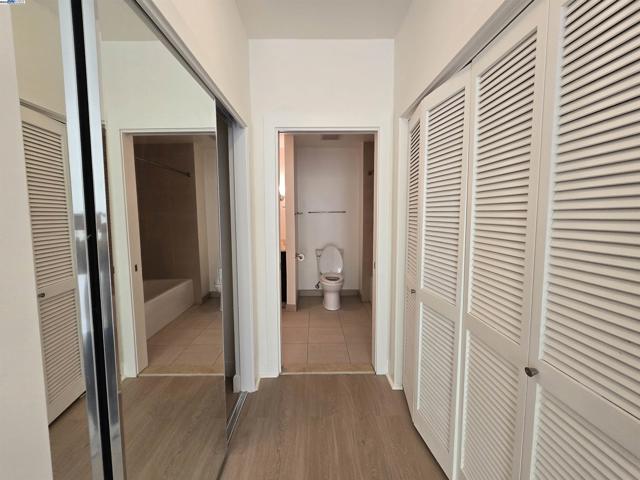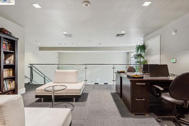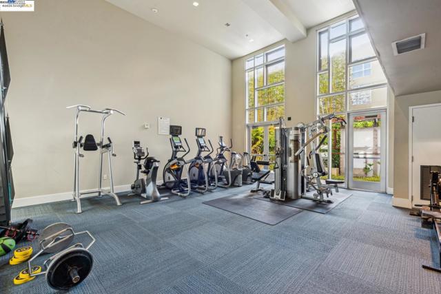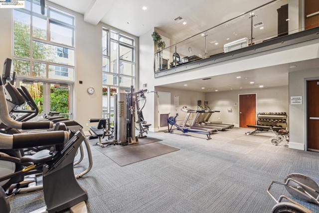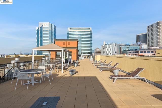 Welcome to Market Square, heart of Oakland's historic district! This stylish 1-bedroom, 1-bath condo features soaring 10-foot ceilings and an abundance of sunlight that floods the south-facing unit. This unit has brand new wood flooring and new interior paint. The building offers numerous amenities designed to enhance your lifestyle. Relax in the sauna and steam room, stay fit in the upscale gym, or catch up on work in the designated workspace and conference room. Adjacent to the gym is a serene garden area, ideal for coffee and lunch breaks. For those who love to entertain, the rooftop deck awaits! Equipped with a barbecue, it offers panoramic views of downtown Oakland, the bay, and even glimpses of San Francisco's iconic skyline. The condo's kitchen boasts granite countertops and stainless steel appliances, inspiring your inner chef. After a long day, retreat to the tranquil bedroom with a generous walk-in closet, ensuring ample storage for your wardrobe essentials. Additional conveniences include a large coat closet and in-unit washer and dryer. Enjoy convenient access to nearby Lake Merritt, downtown Oakland, Jack London Square, several BART stations and the jewel of Oakland...Lake Merritt.