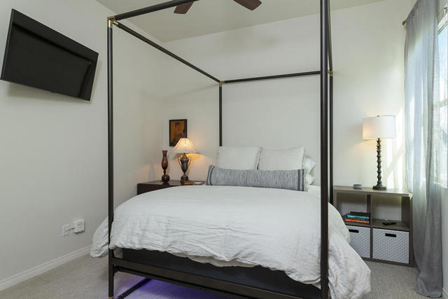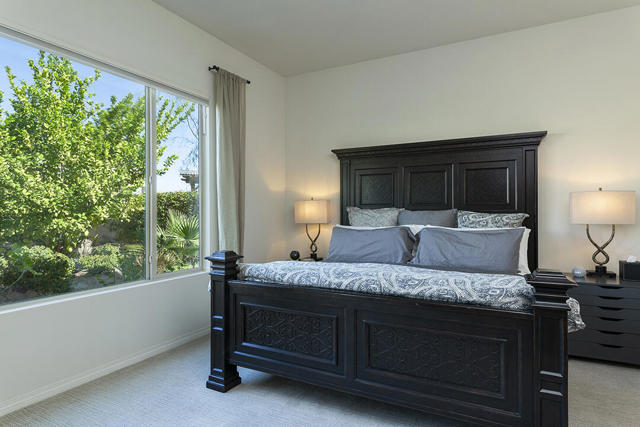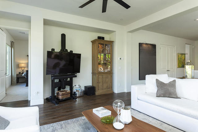 Experience luxury desert living in this contemporary home located within the highly sought-after Del Webb community of Rancho Mirage. A truly immaculate 2-bedroom residence with an office/den and 2 bathrooms, it is ready for you to enjoy immediately. The light-filled interior showcases rich engineered wood flooring, designer color palettes, and elegant finishes throughout. Its open kitchen features a chef's paradise with a dine-in prep island, warm wood cabinetry with ambient lighting, light-toned counters, a large pantry, and a full stainless-steel appliance package.Windows fill the living and dining areas with natural light, and sliding glass doors open to a lush, garden-like backyard. Here, multiple fountains provide the tranquil sound of running water, and a covered patio with a commercial-grade misting system and electric heaters ensures year-round outdoor enjoyment. An extended paver patio offers additional seating areas with mountain views and even a small citrus orchard.The primary suite overlooks the backyard oasis and has a spa-inspired bathroom with a large walk-in closet, and a generous shower. The second bedroom is off the hallway adjacent to the kitchen. It features plush wall-to-wall carpeting, a large closet, and easy access to a full guest bathroom in the hall, where there is also access to the 2-car garage.Del Webb is the premiere 55+ community in the desert for those interested in the convenience of having an active community and community center. The clubhouse features a state-of-the-art fitness center, two resort-style pools, and a wide variety of social activities and classes. Outdoor enthusiasts will enjoy four tennis courts, eight pickleball courts, and miles of scenic walking and hiking trails woven throughout the community.This home is spectacular, and the furnishings are even available outside of escrow, in case you not only fall in love with the home but also hope to have it look as elegant the day you buy it as the day you saw it.
