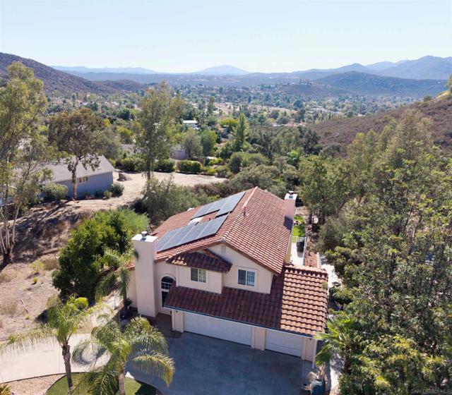 Breathtaking views and modern updates in this two-story home in the San Diego Country Estates. Featuring 3 bedrooms, 2.5 bathrooms, and 1,964 sq ft on a .54-acre lot. Enjoy brand new flooring on the first level, owned solar, and a spacious three car garage with a convenient half bath downstairs. The open layout includes a formal living and dining area, large kitchen with granite counters, stainless appliances, and a cozy den. Upstairs offers a primary suite with two walk-in closets and a private balcony overlooking the valley. The property includes 240V hookups in the garage for EV charging or high-power tools and another in the backyard for a hot tub. Low maintenance Astroturf backyard and multiple patios to relax and take in the incredible Ramona sunsets. This home truly captures the best of comfort, function, and views.