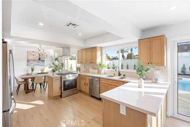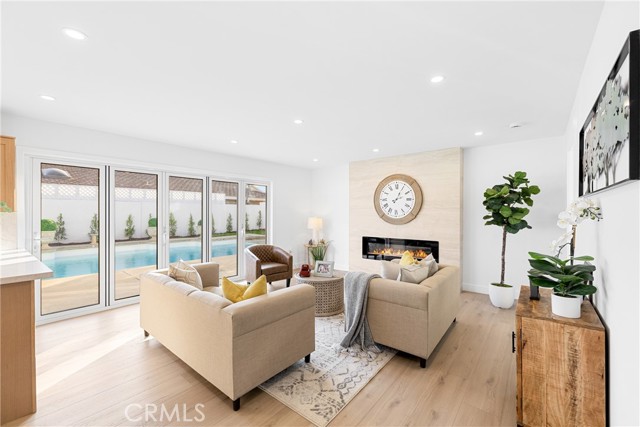 Welcome to 242 Garfield Avenue — a beautifully reimagined contemporary residence blending sophistication, comfort, and California style. This 4-bedroom, 3-bath home offers 2,278 sq. ft. of meticulously curated living space on an 8,000 sq. ft. corner lot. Every detail has been designed for elegance and ease, from soaring vaulted ceilings and exposed beams to wide-plank LVP flooring and designer lighting. The open-concept layout highlights a chef’s kitchen with custom oak cabinetry, quartz countertops, stainless steel appliances, and a peninsula that opens to the dining area and inviting living room with a statement fireplace. A second fireplace anchors the family room, where the bifold glass doors reveal a sparkling pool and seamless indoor-outdoor flow. Upstairs, all bedrooms offer a peaceful space, including a luxurious primary suite with an electric custom fireplace, walk-in closet, and an en-suite bathroom. The primary bedroom also features a rooftop deck. Other great features include new AC unit, paid off solar panels, a spacious 3-car garage. Set in a quiet, desirable Placentia neighborhood close to parks, top schools, and local amenities — this residence defines modern luxury living. Schedule your showing today!