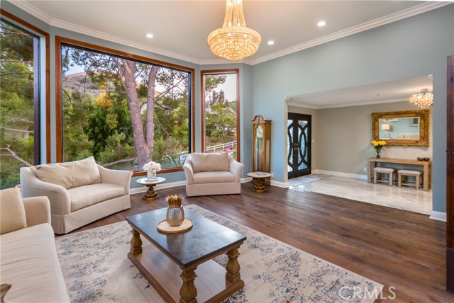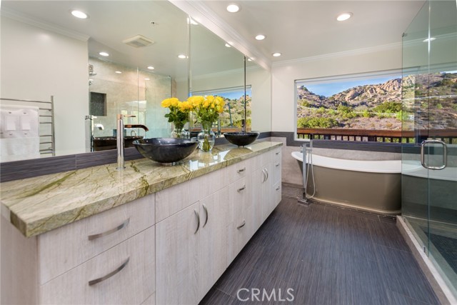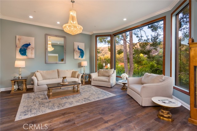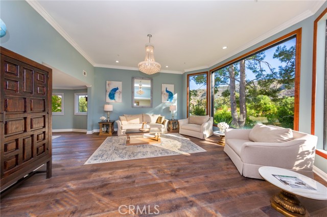 Newly remodeled and renovated, extremely rare single story view home located in prestigious guard gated Bell Canyon. This stunning property features four bedrooms ,four baths at nearly 4200 sq feet .Gorgeous curb appeal with beautiful mature trees and landscaping, as you arrive at this stunning estate. Living room shows like a resort showcasing the amazing views ,huge glass windows, vaulted ceilings, opens up to formal dining room with picture windows showcasing views of mountain and trees , and shows like fine dining space perfect for hosting and entertaining. Kitchen has been remodeled with Bosch appliances, coffee station ,double sink station, eat in kitchen ,glass door that opens to outdoor deck. New remodeled bar with ice maker,200+ bottle wine refrigerator, fossil granite countertops .Huge family room with remodeled fireplace, new 10" Pella glass doors that open to huge 3000 sq ft deck for outdoor entertainment and large scale parties. Primary bedroom is double sized to accommodate large sitting/lounging area, bedroom area with deck, large walk in closet with organizers .Primary bathroom has toilet closet with bidet, soaking tub overlooking the views ,step in shower, double sink vanity. Second En suite is truly magical with amazing windows and tree views, remodeled bath with separate shower an vanity area. Additional two bedrooms and baths have been remodeled as well. Remodeled laundry room with Samsung refrigerator, new Samsung front loading washer and dryer. Finished 3 car garage with new doors, and sprinkler system This property has so many upgrades and improvements. New roof ,New hardwood floors, Two American standard A/C and furnace, two air purification systems,400 amp electrical system, Halo water purification, tankless water heater ,night owl security camera system, etc. This one story view home is the best value in prestigious Guard gated bell canyon. Enjoy equestrian center ,gym, tennis courts, biking and hiking trails .Located in Ventura county with Las Virgins award wining school district. Hidden Hills adjacent, centrally located. Close to malls, shops, Calabasas commons, THE VILLAGE.Enjoy nature and views feels like vacation all year round .