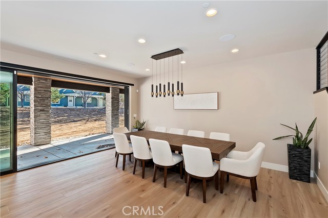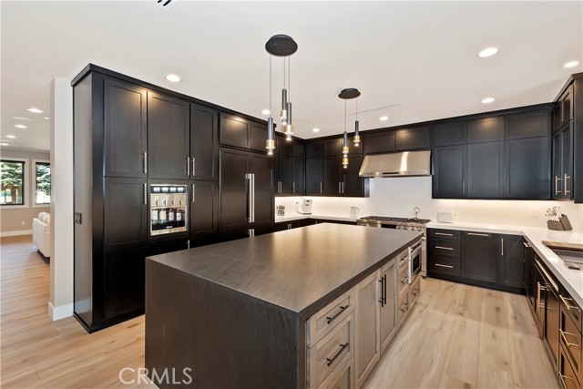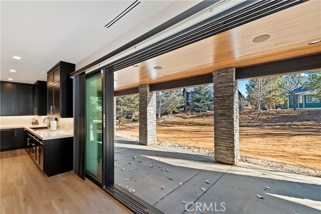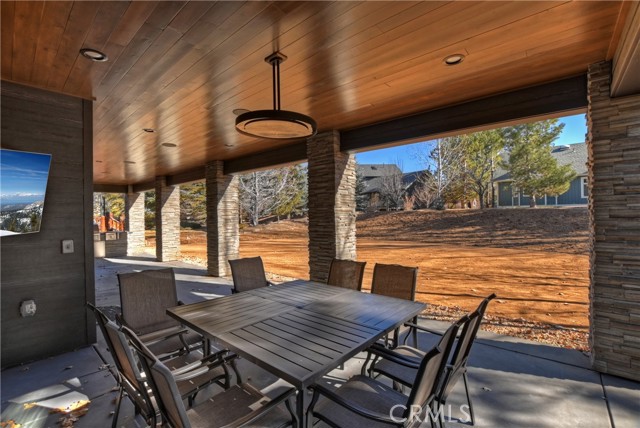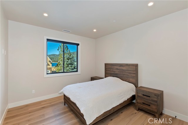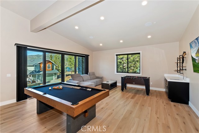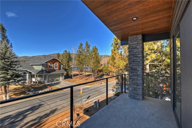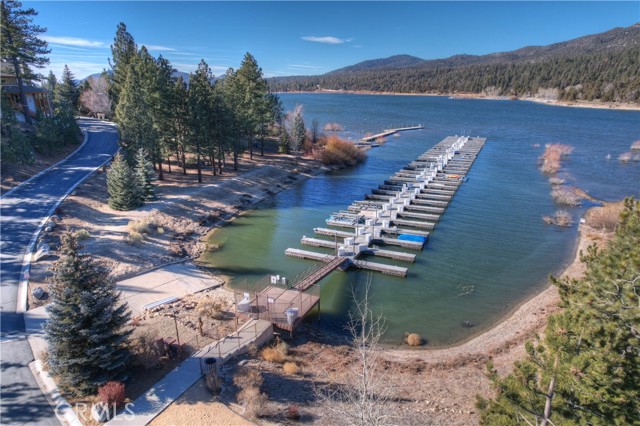DISCOVER THE ULTIMATE RETREAT IN THIS BRAND NEW RUSTIC CONTEMPORARY HOME, COMPLETE WITH MODERN AMENITIES, SITUATED IN THE EXCLUSIVE GATED COMMUNITY OF EAGLES KNOLL ~ Conveniently located to all that Big Bear has to offer, this home is across the street from the lake and the community offers a private marina, common tennis court, and community park ~ Quality construction and well-designed open floor plan w/ loads of upgrades including air conditioning & smart home controls ~ The upscale kitchen is a chef's delight, equipped w/ high end Decor appliances (fridge, stove, dishwasher, range, microwave & wine dispenser) & a spacious center island for entertaining ~ The adjacent dining area creates a perfect setting for intimate meals ~ Step outside through the large folding doors, allowing the crisp mountain air to flow throughout the home, bringing the outdoors in, hosting gatherings, & enjoying the built-in bbq w/ friends & family ~ The expansive living room features tall ceilings & a gas fireplace, creating a cozy yet spacious ambiance ~ The large game room upstairs, complete w/ a bar & massive sliding glass door, provides an additional space for entertainment & relaxation ~ Fire sprinklers included for added safety & energy-saving solar panels (leased) ~ Level entry oversized 2-car garage, featuring electrical wiring for EV charging, tall ceilings, & a garage door suitable for boat storage ~ Come view this beautiful home!