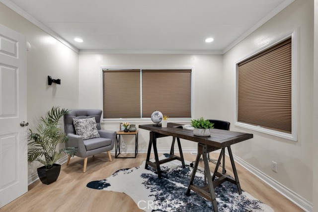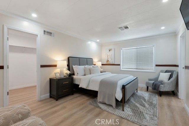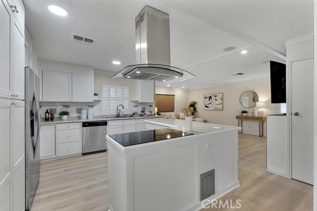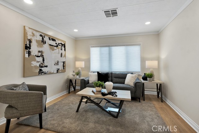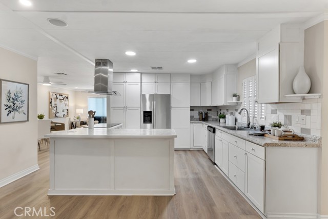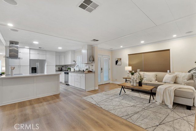 Welcome to 21001 Plummer Street #82, a beautifully updated triple-wide home in the desirable 55+ Sunburst Mobile Home Estates in Chatsworth. Offering approx. 1,768 sq ft, this 3 bed, 2 bath home feels more like a single-family residence than a mobile home. Step inside to a bright, open-concept great room with wide-plank wood-look flooring, recessed lighting and crown molding. The spacious living area features a sleek media wall, with plenty of room to relax or entertain. Just off the living room is a light and airy dining area with a modern ceiling fan and large picture window. The heart of the home is the stunning remodeled kitchen: white cabinetry, expansive counters, subway tile backsplash, stainless steel appliances, and an oversized center island with cooktop and contemporary range hood. There’s incredible storage, generous prep space, and an easy flow to the living and dining areas—perfect for hosting family and friends. The primary suite is oversized, with space for a sitting area, a walk-in closet, and an en-suite bath with a large vanity and step-in shower. Two additional bedrooms are ideal for guests, an office, or hobby space, and the second bath conveniently connects to the separate laundry room with extra cabinetry. Outside, enjoy morning coffee or evening breezes on the covered front porch, and take advantage of two tandem parking spaces in the carport. Residents of Sunburst Mobile Home Estates enjoy a friendly 55+ community with a sparkling pool and clubhouse, all in a convenient Chatsworth location close to shopping, dining and freeway access. Move-in ready, stylish, and spacious—this is the low-maintenance lifestyle you’ve been waiting for.