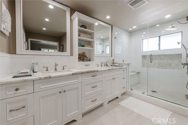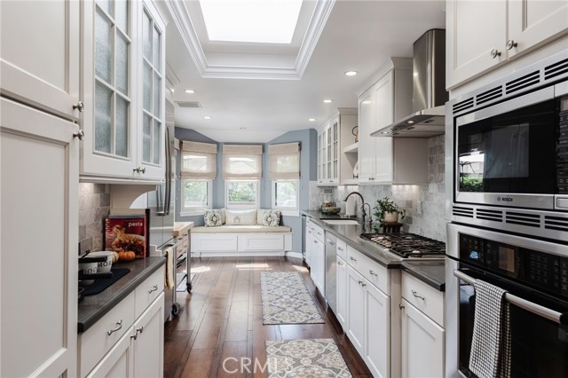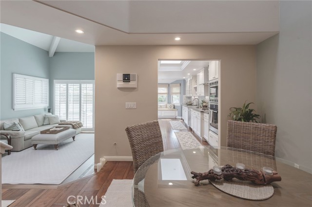 This desirable PLAN 4 townhome has been beautifully remodeled throughout and offers 3 bdrms and 2.5 baths. A professional decorator selected high-end upgrades that are beautiful, current, and timeless. The location of this sought-after plan looks and feels like a single-family home, with windows on most sides that let in excellent light. The main living area (living room, dining room, kitchen, and outdoor space) is all on the main floor. The kitchen is truly a designer kitchen with many features found only in larger homes. The built-in seating, which offers storage and direct access to the outdoor space, is unique to this floor plan. Lots of cabinetry storage, a wine refrigerator, and a designated coffee bar area are just a few features worth mentioning. An updated fireplace highlights the living room. Direct access to the outdoor patio allows your living space to expand when desired. The dining room features a high ceiling, which adds significant volume to the space. The outdoor space is beautifully landscaped and offers privacy. Access from the home is ideal as it flows off the living room and the kitchen. The primary suite is located on the middle level, only a few steps away. Every detail was addressed ... from the cabinetry, which offers good storage, to the oversized shower and the walk-in closet with built-ins. The Calcutta marble is gorgeous! The upstairs bedrooms are spacious with good-sized closets. One bedroom has custom built-in cabinetry, including an office area with display shelving. The two additional bathrooms have also been updated with high-end finishes that are current and timeless. There are hardwood floors throughout the home with carpet in a few areas. The laundry area is centrally located inside the home. The two-car garage is oversized and also offers built-in storage. This is a terrific turnkey home!