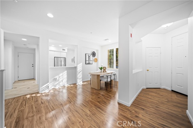 Amazing end-unit 3-bedroom, 2.5-bath townhouse with an attached 2-car garage, located in the prestigious gated community of Northwood Pointe, Irvine. Within walking distance to top-rated Canyon View Elementary and Northwood High School, this home perfectly blends comfort, convenience, and sophistication. The inviting front entry leads into bright, open living spaces with beautiful laminate floors throughout, a cozy fireplace, recessed lighting, and plantation shutters that elevate the home’s elegant character. The spacious eat-in kitchen features ample cabinetry, a brand-new range and microwave, and seamlessly connects to the south-facing living and dining areas—filled with natural light and refreshing airflow. Upstairs, the primary suite offers a generous retreat with a walk-in closet, and a luxurious bathroom with a separate soaking tub and walk-in shower. Two secondary bedrooms are well-sized and share a stylish hallway bath, while the upstairs laundry room adds everyday convenience. Enjoy resort-style amenities including a pool, spa, kiddie pool, and BBQ area within the community, plus access to playgrounds, tennis courts, and volleyball courts in the master-planned Northwood Pointe. Conveniently close to parks, hiking trails, shopping centers, restaurants, The Market Place, and major freeways (I-5 and 261 Toll Road), this home offers the ultimate Irvine lifestyle—where top-tier education, gated serenity, and modern comfort meet.