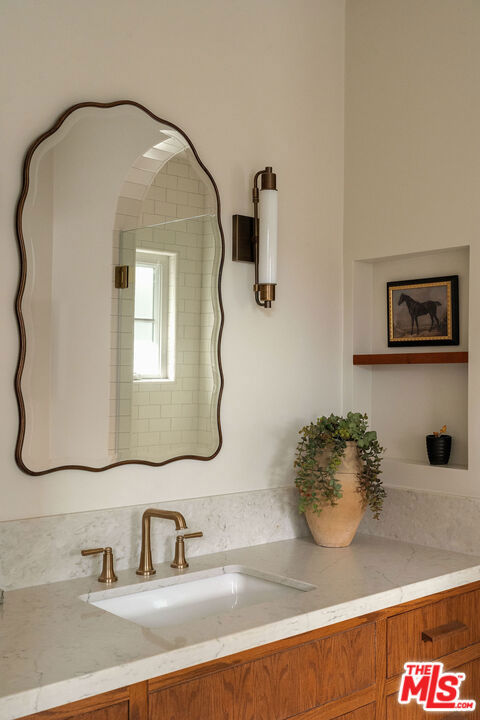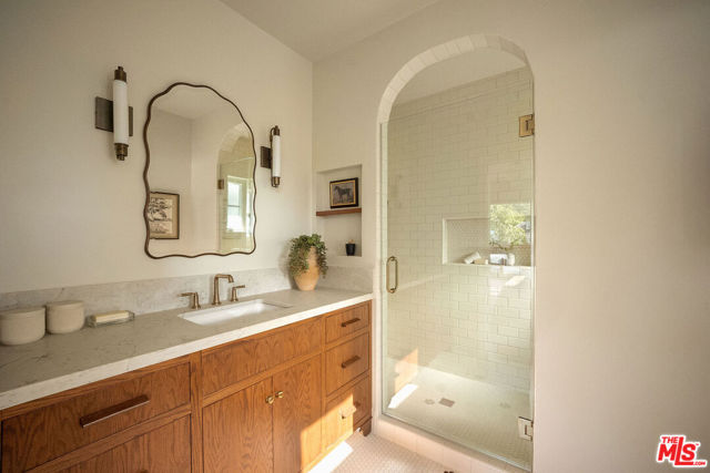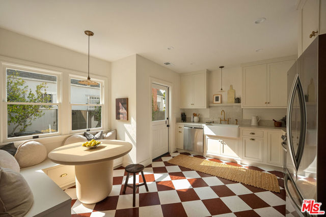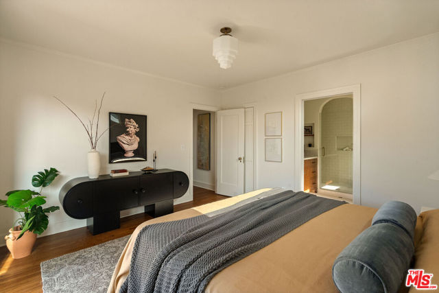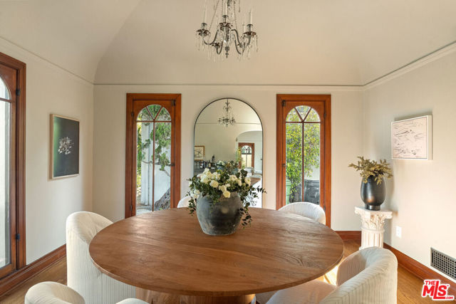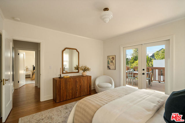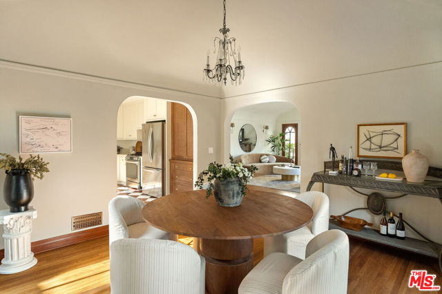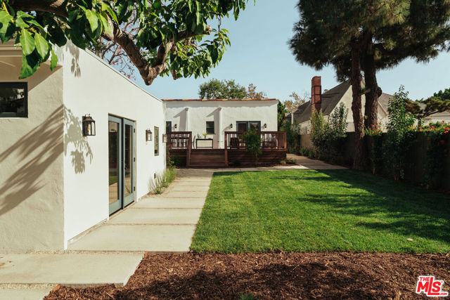 Step into this beautifully renovated Spanish-Moorish inspired architectural gem located in the coveted Brookside neighborhood of Los Angeles. With its enchanting combination of classic design and modern updates, this 3 Bed /2 Bath residence sits on an impressive 7303 sq foot lot, with a newly permitted, standalone ADU. Curved arches, intricate tile work, and high barreled ceilings capture the essence of Moorish design, blending elegance with warmth. Brand new gourmet kitchen serves as the heart of the home featuring custom inset cabinetry, quartz countertops, stainless-steel appliances, and a charming built in dining banquette, perfect for morning coffee or casual meals. Natural light floods the generous living and dining areas through stunning arched wooden floor to ceiling windows. The luxurious primary bedroom offers a walk-in closet and ensuite bathroom with vintage-inspired tilework, plus French doors opening to an expansive outdoor deck ideal for ideal for alfresco dining and socializing. The professionally landscaped grounds provide multiple outdoor spaces surrounded by lush greenery, creating your own private California oasis. Sleekly designed ADU features LA Concrete Works cement floors, a full kitchen with retro refrigerator and microwave, room for washer/dryer combo unit, and spa inspired bathroom - perfect for generating rental income or housing guests and family. Throughout the home, you'll find meticulously chosen finishes, including custom light fixtures, refinished hardwood floors, and modern hardware that pays homage to the home's distinctive architectural style. A California basement provides ample storage and solar panels make this home extra efficient . Located minutes to Larchmont Village and walking distance of Memorial Park.