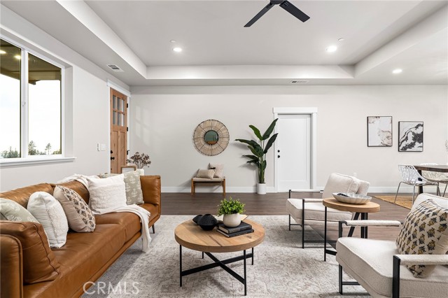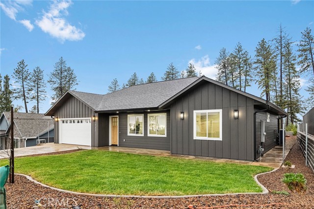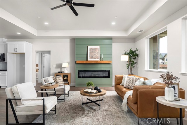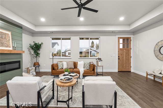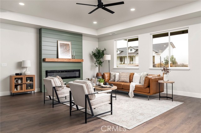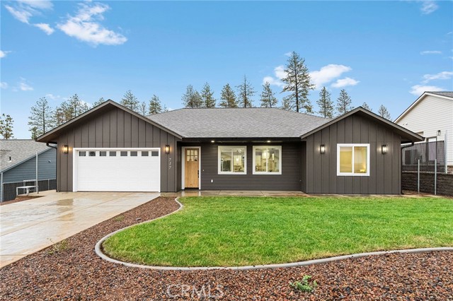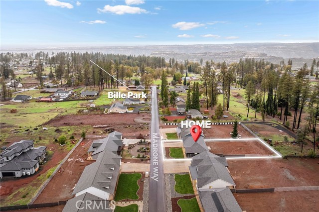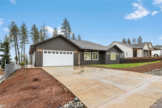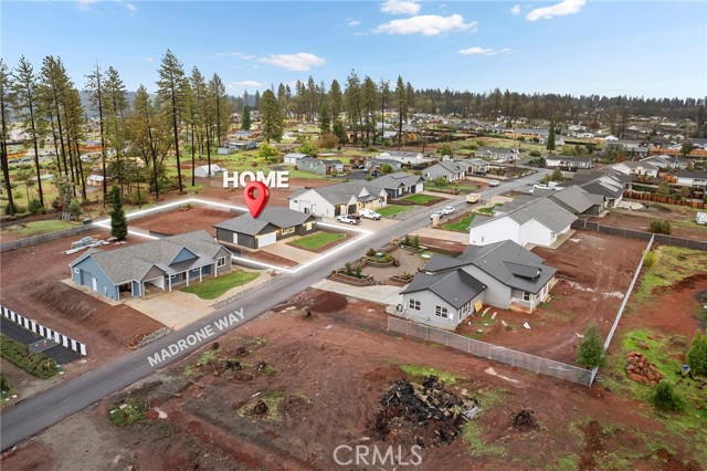 Welcome to 717 Madrone Way — where modern design meets small-town charm! This beautiful 3-bedroom, 2-bath home sits on one of Paradise’s most desirable, newly built streets—lined with gorgeous stick-built homes. Gone are the days of wondering what might be built next door; Madrone Way offers peace of mind and a true sense of community. If this home isn’t the one, come see what else is available on Madrone! Step inside and you’ll immediately be greeted by 9’ ceilings throughout, with 10’ tray ceilings in both the living room and the primary suite. The finishes set this home apart, with the green fireplace serving as an instant showstopper. The open-concept layout is perfect for entertaining, featuring a spacious kitchen with an L-shaped island and plenty of room for barstools—ideal for gatherings and everyday living. This split floor plan places two bedrooms, a full bath, and the laundry room on one side, while the primary suite enjoys its own private retreat on the other. The primary bathroom feels like a spa getaway, showcasing a striking wet room with a tile shower and soaking tub, all enclosed in glass for a sleek, modern touch. From the primary suite and back patio, enjoy beautiful sunsets that fill the sky each evening! Outside, you’ll love the fully fenced backyard, perfect for pets, play, and privacy. The location is unbeatable—tucked on the west side of town with a short drive to beloved Bille Park and easy access to Skyway, making it simple to reach anywhere in Paradise or beyond in minutes. Built by American Dream Construction, a trusted local builder known for quality and craftsmanship, this home includes an extra 6-months to the standard 12-month fit & finish warranty for added peace of mind. Plus, a brand-new, OWNED solar system (installed during escrow) for added efficiency and savings. For peace of mind, American Dream is one of the only builders in Paradise going above and beyond current wildfire safety standards. Each home is fully wildfire-prepared, featuring 5 feet of defensible space, Class A fire-rated roofing, ember-resistant Vulcan vents, and non-combustible gutter systems and downspouts—offering both beauty and resilience in one exceptional package. With great curb appeal, landscaping, fencing, a two-car garage, and thoughtful design throughout, 717 Madrone Way is a home you’ll love coming back to every day. Come see the quality, design, and community that make Madrone Way one of Paradise’s most exciting new streets to call home!
