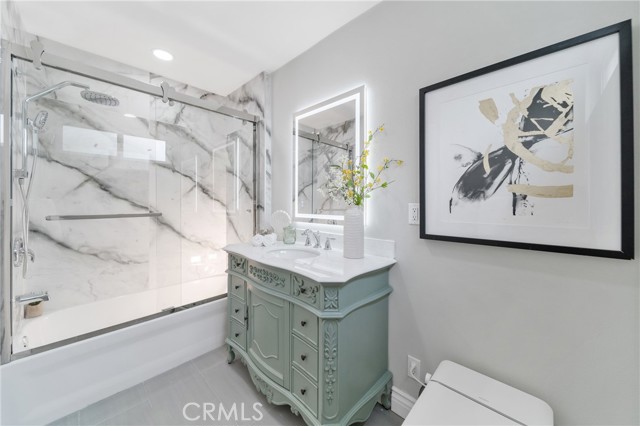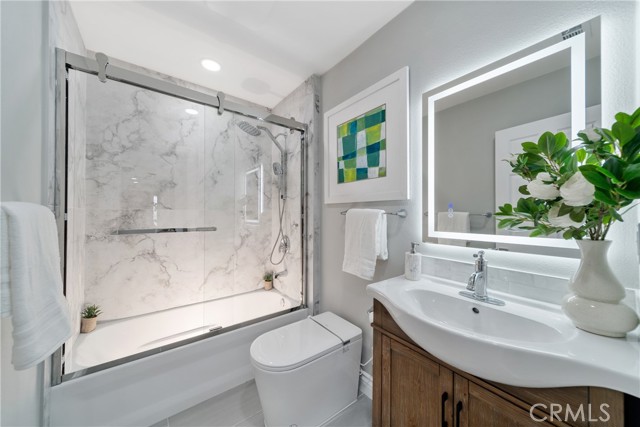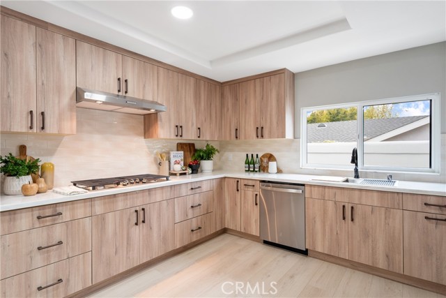 *Single-level, single-loaded street — beautifully remodeled home~Located on a serene single-loaded street with no front-facing neighbors, this beautifully remodeled single-level home blends modern elegance, warmth, and convenience. Offering approximately 2,008 sq. ft. of living space on a 6,500 sq. ft. lot, the residence features four spacious bedrooms, three stylish full bathrooms, and a convenient powder room—all thoughtfully designed for comfort and functionality. The open-concept living and dining area welcomes you with vaulted ceilings, abundant natural light, and luxury vinyl plank flooring throughout. The freshly painted interior creates a clean and inviting atmosphere. The spacious, chef-inspired kitchen showcases sleek quartz countertops, brand-new stainless steel appliances, and contemporary flat-panel European-style cabinetry in a warm light-oak tone, accented by matte brown hardware for a sophisticated finish. Each bedroom enjoys high ceilings for an enhanced sense of space and comfort. All bathrooms have been completely renovated with spa-like designs, featuring frameless glass showers with large-format marble-look porcelain tiles, rainfall shower heads, and elegant vanities with LED backlit mirrors that provide a soft, modern glow. Additional upgrades include partial electrical and plumbing improvements (including the garage), new light fixtures throughout, a brand-new water heater, and an epoxy-coated garage floor. Outside, the 6,500 sq. ft. lot offers spacious front, side, and rear yards—freshly landscaped with new real grass, trees, and a tranquil fountain. The backyard has been newly paved and includes a built-in BBQ, providing the perfect setting for outdoor living and entertaining. Positioned within a desirable Saddleback Valley Unified School District and close to shopping, dining, and recreation, this home also features public sewer and water, no HOA fees, no Mello-Roos taxes, and a large gated side yard ideal for RV, boat, or extra parking. Don’t miss the opportunity to make this move-in-ready home yours!