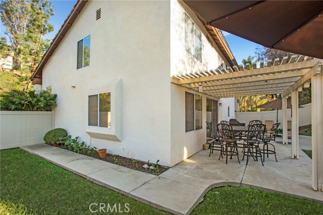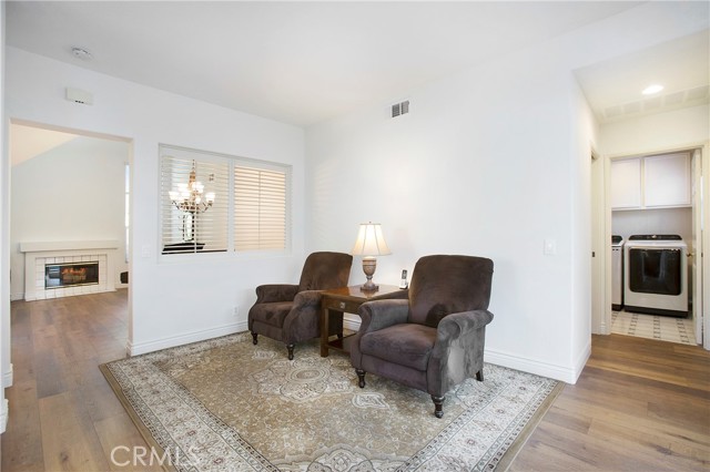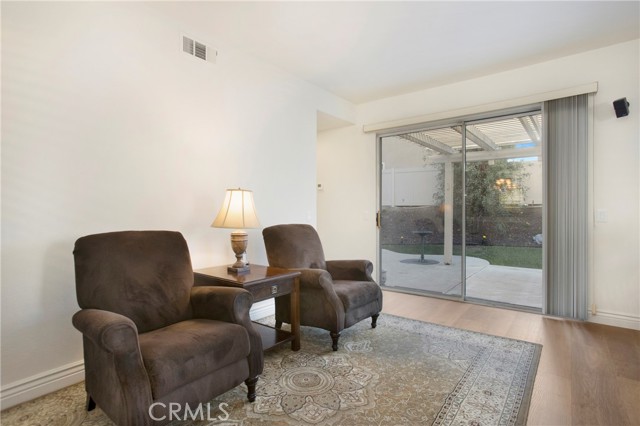 LOCATION*LOCATION*LOCATION! Exceptional 3 Bedroom, 2.5 Bath Detached Home in Seacoast Terrace, one of the most sought after neighborhoods in Laguna Audubon. Great floor plan with open living room, cozy fireplace, soaring vaulted ceilings and ridiculously large windows that lets beautiful soft light stream in while providing blue sky and tree views. Gorgeous water resistant plank flooring throughout first floor and new carpet upstairs. The family room and eat-in kitchen have lovely view of the pretty backyard, which wraps around either side of home, providing space for a dog run, horseshoe pit, garden, sandbox etc without taking away from entertaining space. MAN CAVE shed, club house, doll house or SHE SHED in backyard stays with property. Upstairs you'll find a good size landing that has a perfect nook for an office/homework desk and overlooks open living room below. The sunny primary bedroom has high ceilings, walk-in coset and ensuite bathroom with bubblebath tub. The second and third bedrooms down the hall share a jack-and-jill bathroom and overlook the private backyard. This home features a 2-car garage with Tesla charger and has direct access to home. Wonderful corner lot on quiet street. Close to Aliso Viejo Town Center, shops, restaurants, Irvine Spectrum, movie theater, medical, hiking and biking trails, Aliso Viejo Country Club, fantastic schools and about five miles to famous Laguna Beach. LOW HOA dues and NO Mello Roos.