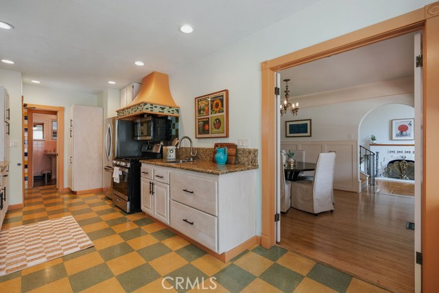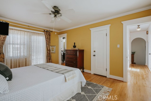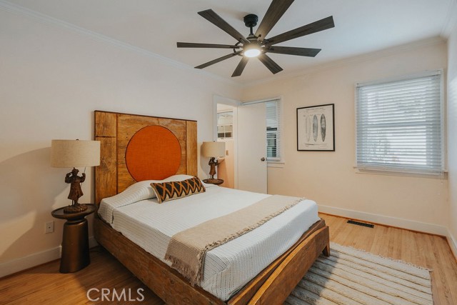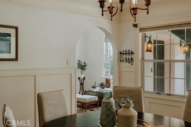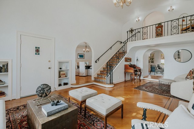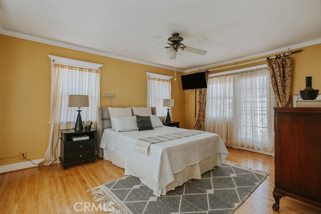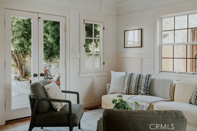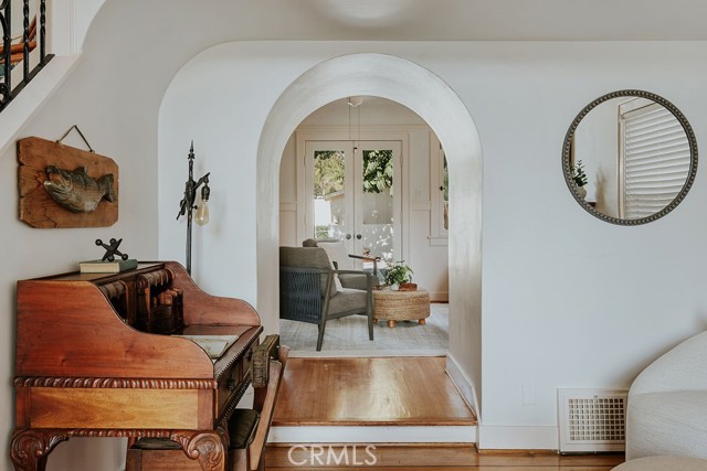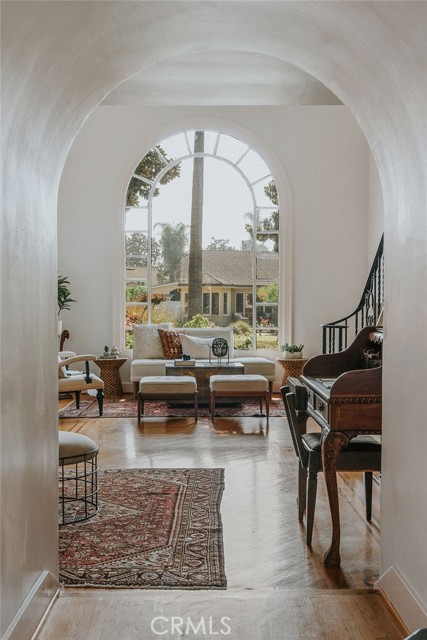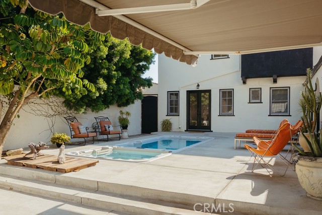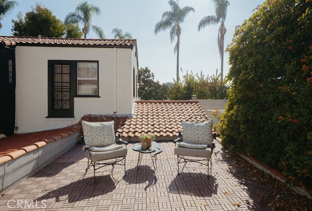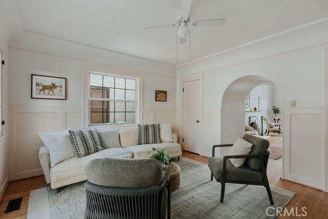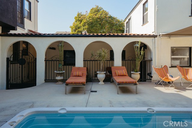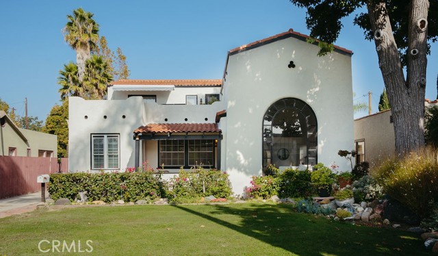 Beautifully preserved two-story Spanish Revival home with separate ADU situated on a historic street in vibrant Fullerton! Masterfully blending classic architectural character with modern comfort—this light-filled main residence offers 3 spacious bedrooms and 2.5 baths, with a convenient first-floor bedroom and bath. Enjoy multiple gathering spaces— including a family room, formal living room, and separate dining area, all flowing from a recently updated, modern-retro style kitchen. Meticulously maintained to preserve its original charm—featuring ornate trim, wall paneling, interior French doors, and original hardwood floors accented with rich cherrywood details. The formal living room impresses with its vaulted ceilings, grand arched window, wrought iron staircase, and stylish fireplace, creating the perfect setting for both relaxation and entertaining. Upstairs, a large open-air patio deck terrace overlooks the lush front lawn and mature flower garden, enhancing this home’s curb appeal and serene atmosphere. Outside, a long driveway, carport, and tandem 2-car garage provide ample parking with dual access from both the front and back streets. Step into the private backyard courtyard to unwind by the built-in exercise pool or relax in the attached spa. Additional modern updates include upgraded plumbing and electrical, a forced-air pulse heating system, and energy-efficient windows for year-round comfort. The property includes a fully updated two-story detached ADU, featuring 2 rooms, 2 full baths, its own roof deck great for entertaining, and a private separate driveway entrance—perfect for extended family, guests, or reliable rental income. Don’t miss this rare opportunity to own a vintage Fullerton Spanish Revival treasure—a home that captures the beauty of the past while offering modern versatility and income potential!