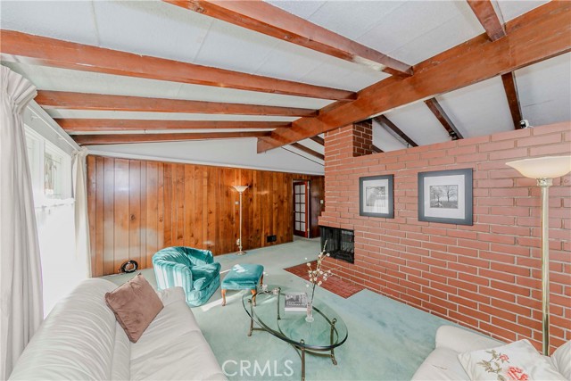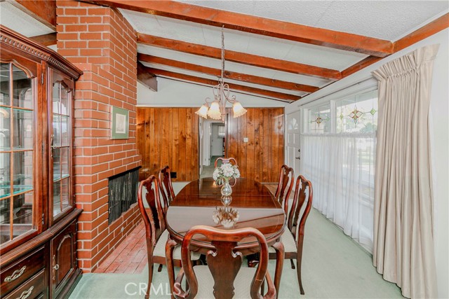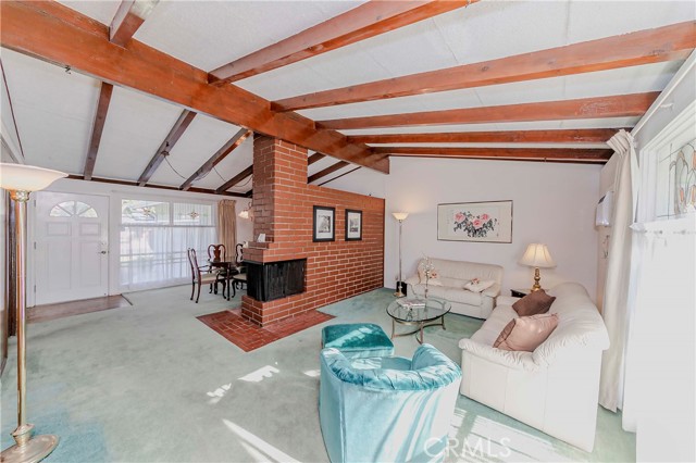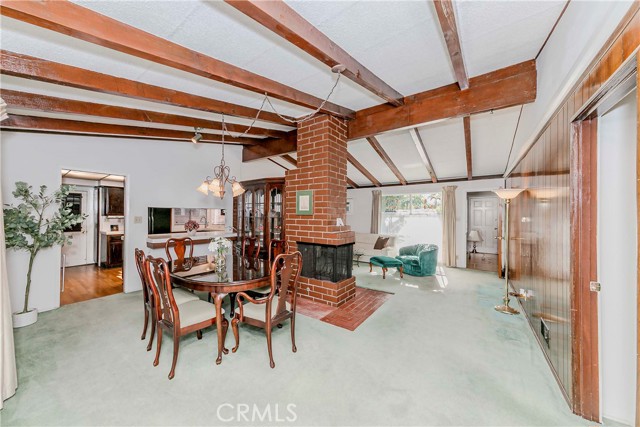 Cherished Single-Level Home with Timeless Character Lovingly cared for by the same family for over 40 years, this inviting 5-bedroom, 2-bathroom residence offers comfort, space, and classic charm in a highly desirable neighborhood. Step inside to a welcoming dining area with vaulted wood-beam ceilings and a large picture window overlooking the front yard. The spacious living room features expansive windows framing views of the tranquil backyard and a two-way brick fireplace shared with the dining area—perfect for cozy gatherings. The bright kitchen includes an electric range, wine cooler, two windows over the sink, and a convenient breakfast counter. The hallway bath features a tub with a glass enclosure, while the enormous primary suite offers a walk-in closet and an ensuite bathroom with dual sinks and a soaking tub. Stained-glass accents add a touch of artistry throughout the home, and multiple bedrooms provide flexibility for family, guests, or a home office. Additional highlights include a newer roof and solar panels, offering energy efficiency and long-term savings. Enjoy the peaceful backyard with mature landscaping, and the beautifully maintained front yard with wonderful curb appeal. An attached garage with automatic door and a friendly neighborhood—where neighbors walking their dogs stop to say hello—make this home even more special. Conveniently located near major freeways, shopping, and a nearby university, this is a rare opportunity to own a spacious single-level home with lasting warmth and character.