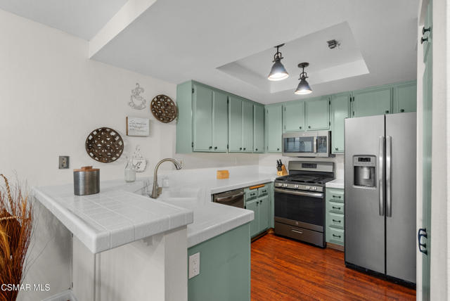 This beautiful move-in ready home offers 2 bedrooms and 1.5 bathrooms, featuring smooth ceilings and hardwood flooring throughout the downstairs. The inviting living room includes a cozy fireplace and opens to a private patio--perfect for relaxing or entertaining.The bright kitchen offers ample cabinet space and flows seamlessly into the dining area, while the indoor laundry area adds everyday convenience. Both bedrooms are located upstairs and feature ample closet space, providing comfort and functionality with plenty of natural light throughout.Additional highlights include a detached two-car garage just steps away and access to a community pool and spa for year-round enjoyment.Ideally located near parks, shopping, dining, and easy freeway access, this home combines comfort, convenience, and great community amenities.Don't miss your opportunity to own this well-maintained townhome in one of Simi Valley's most desirable communities!