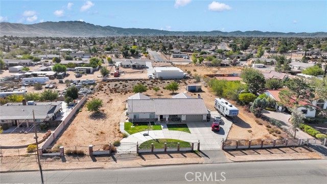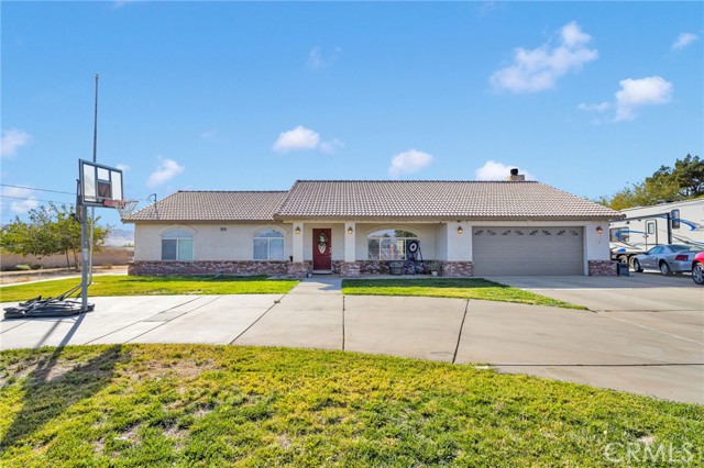 Tucked away in a peaceful Hesperia neighborhood, this beautifully maintained home offers the perfect blend of comfort, space, and versatility. Sitting on just over an acre of land, this property provides plenty of room for RV parking, outdoor entertaining, or even future expansion. Inside, you’ll find a bright open-concept layout that flows seamlessly from the living and dining areas into a spacious kitchen—ideal for gatherings and everyday living. With four bedrooms and three full bathrooms, this home is designed with flexibility in mind, featuring two primary bedroom suites, perfect for multi-generational living or guests. The property is fully enclosed with a block wall and wrought-iron fencing, offering both privacy and curb appeal. Whether you’re looking for room to grow, space for your toys, or simply a peaceful place to call home, this Hesperia gem delivers it all.