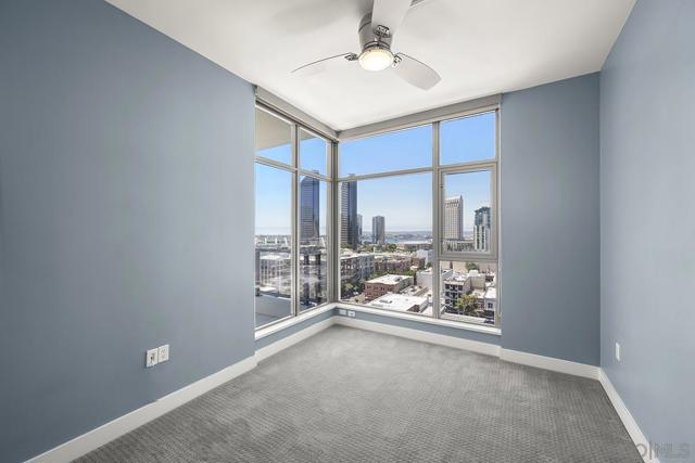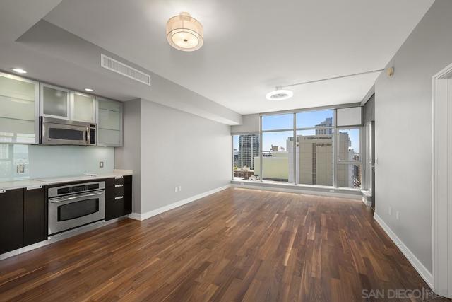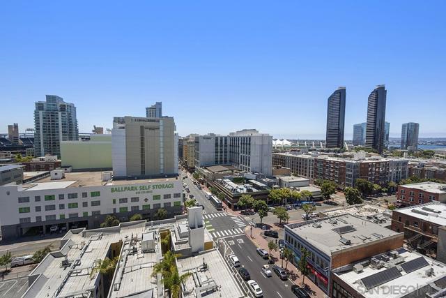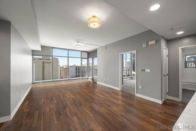 Welcome to your perfect perch in the sky! This highly sought-after southwest corner residence at Alta delivers awesome panoramic views of the San Diego Bay, Point Loma, and the glittering Downtown skyline. With freshly refinished wood floors, the open floor plan is framed by expansive windows offering natural light, a sleek kitchen with stainless appliances, modern cabinetry with frosted glass accents plus a one-of-a kind custom built-in buffet featuring cabinets, drawers; all with quartz counters. Both bedrooms include beautiful views, ceiling fans, and organized closets with frosted glass doors. The bathrooms feature marble countertops and slate tile flooring for a clean, modern finish. Additional features include an in-unit washer/dryer, powder room, storage cage, and a secured parking space, everything you need for effortless urban living. Alta is a building as unique as you are with distinctive architecture by Perkins and Company. Perfect for the active Downtown dweller, residents can take advantage of a 50’ indoor/outdoor pool, spa, large fitness center, and a luxe communal club room with home theater and pool table. Additionally, Alta prides itself on featuring energy efficient appliances and mechanical systems for lower utility costs. Top-notch amenities, fabulous design, and professional, on-site community management combine for one of the best HOA values in all of Downtown San Diego! Situated in East Village on the edge of the city’s historic Gaslamp Quarter, enjoy a premium location only steps away from Petco Park and convenient access to endless shopping, dining options, and night life.