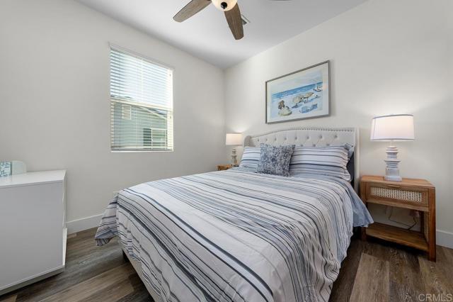 Discover your sleek and stylish retreat in this modern three-bedroom, two-and-a-half-bathroom townhouse featuring designer interiors, private outdoor space, and an ideal location in the heart of Imperial Beach, California, just minutes from the beach. Thoughtfully arranged over 1,363 square feet, this home impresses with gorgeous LVP flooring, tall ceilings, recessed lighting, ceiling fans, and oversized windows, creating a bright and airy ambiance. The open-concept design welcomes you with seamlessly connected living and dining areas, perfect for relaxing and entertaining. Chefs will love the open kitchen, where charming blue and white cabinetry and quartz counters surround stainless steel appliances, including a gas range, French door refrigerator, dishwasher, and built-in microwave. Enjoy casual meals under lovely woven pendants at the expansive breakfast bar/island, or step out to the balcony for morning coffee or after-dinner drinks. A convenient powder room completes the main level. Upstairs, the expansive owner’s suite is a tranquil escape complete with generous closet space and an en-suite bathroom featuring a double vanity, separate walk-in closet, and shower. Two spacious secondary bedrooms offer versatility for guests or home office space alongside a well-appointed full-hall bathroom. Central HVAC, an in-unit washer-dryer, and a two-car garage add comfort and convenience to this exceptional Imperial Beach beauty. Bayside Landing community amenities include a pool area with a hot tub, sun deck, showers, playground, and barbecue area. In this ideal Imperial Beach location, you’re less than a mile from the beach and Imperial Beach Pier. Enjoy easy access to the Navy Seal Base, great restaurants, stores, nightlife venues, Veterans Park outdoor space, and a dog park. Just 15 minutes away, you’ll find San Diego amenities, Downtown San Diego, Coronado, and the iconic Hotel Del. Short-term rentals on Airbnb/VRBO are allowed.