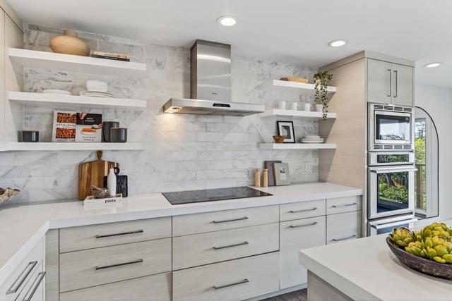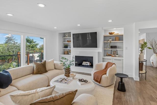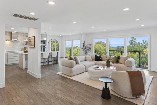 A Modern Transformation with Sweeping Bay Views! Beautifully remodeled for modern living, this Lower Hillsborough home showcases an open-concept design with wide expanses of glass that frame views across the San Francisco Bay and out to the Bay Bridge and East Bay hills. Natural light fills every room, two gas fireplaces add warmth, and wood-like tile floors unify the open living areas. Expansive formal rooms are complemented by a designer kitchen and family room combination, creating an ideal layout for entertaining and everyday comfort. Rounding out the main level are three spacious bedrooms, including a primary suite that takes full advantage of the views, plus there is a flexible-use lower level with large bonus room and adjoining bath. Outside, an expansive view deck with cable-strung railings and terraced lawns extend the living space, providing ample room for entertaining and play. With its modern transformation, dazzling views, and sought-after Lower Hillsborough setting, this home presents the perfect place to live midway between San Francisco and Silicon Valley.
