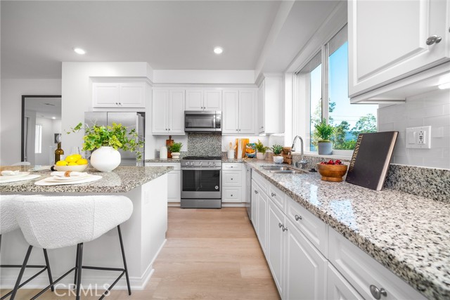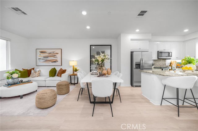 *Facing Community Greenbelt* Turn-Key home in Paseo Del Mar Community. This desired remodeled unit offers lots nature light in living space. NEW FLOORINGS with only carpet on the stairs. NEW PAINTS. 1st Floor has open space and it is ideal for office or entertainment area. 2nd Floor are included delight kitchen with white shaker cabinetries, center island, walk-in pantry, back splash, stainless steel appliances that overlooks the Great Room. Covered deck is perfect to enjoy the community greenbelt at any time. Convenience guest powder room. Top floors are Master Suite with Walk-In Closet, Dual Sinks and Shower Area, two spacious bedroom, hallway bathroom and laundry area. Direct access to 2-car garage. Enjoy community amenities. CONVIENT LOCATIONS, close to Diamond Jamboree Plaza, Walmart Supercenter and HWY 5/55/405.